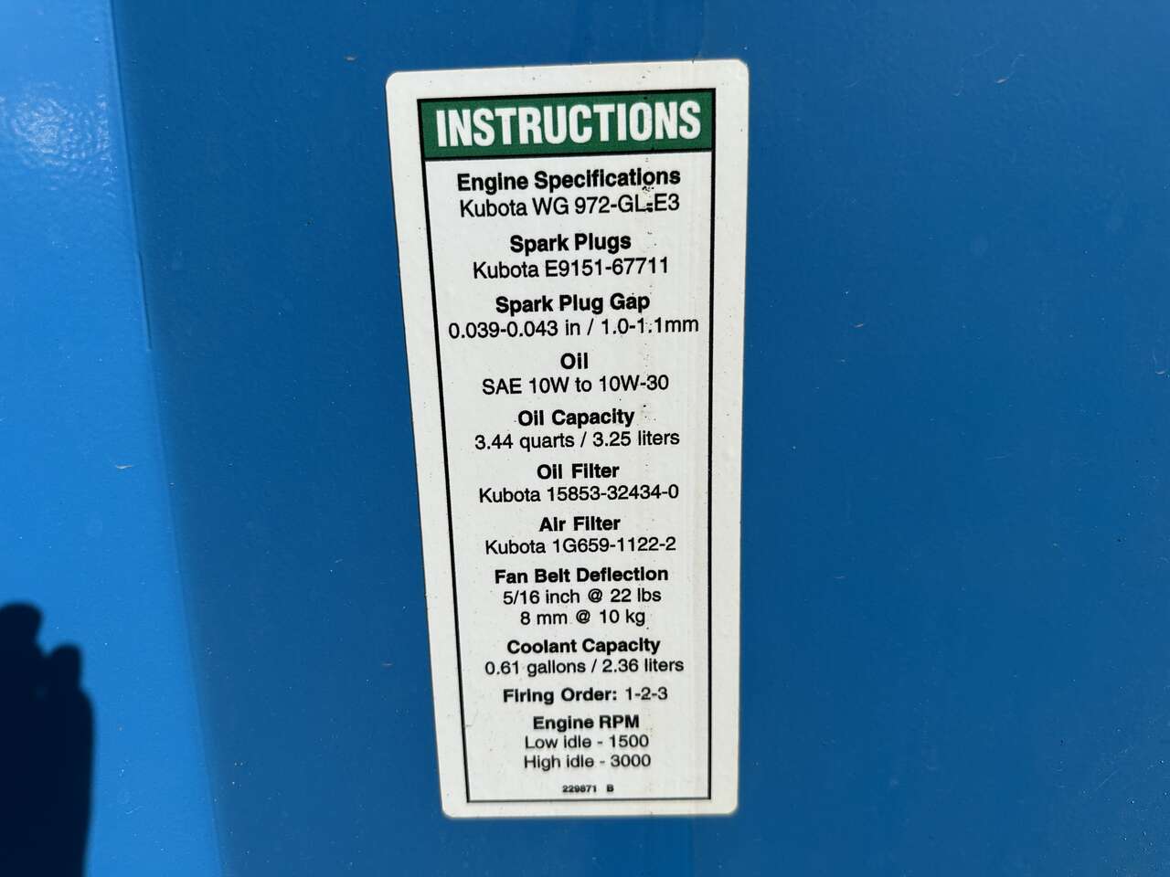 DRIVE Engine Type: Kubota Dual Fuel Engine Condition: Good cold start, Good compression, Cylinder balance normal, Good power, No blowby Trans Condition: Good. Operation normal Final Drives: Good Power Steering: Good Steering: Good. Operation normal Hydraulics: Good. Function and Timing within specs Fluid Levels: Good