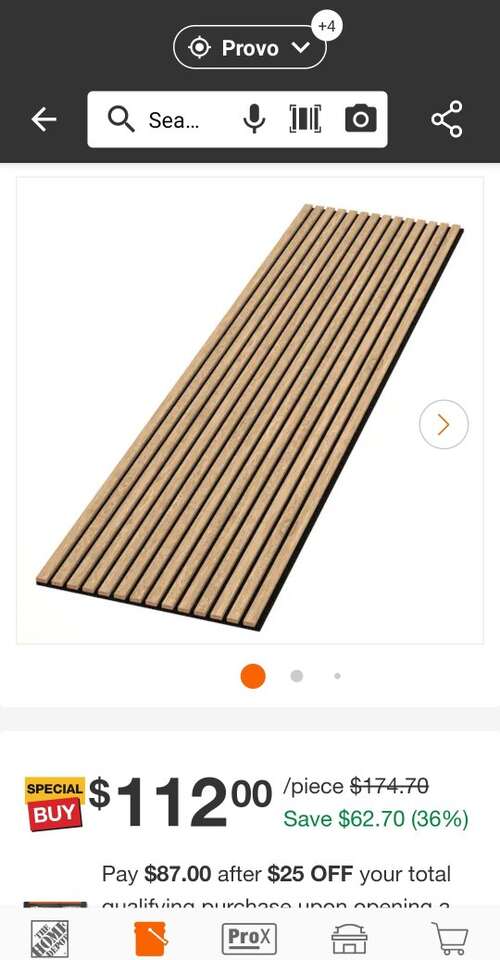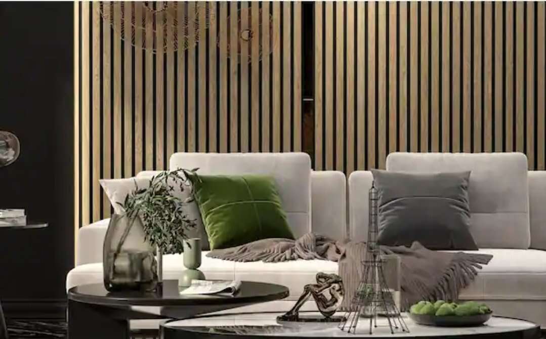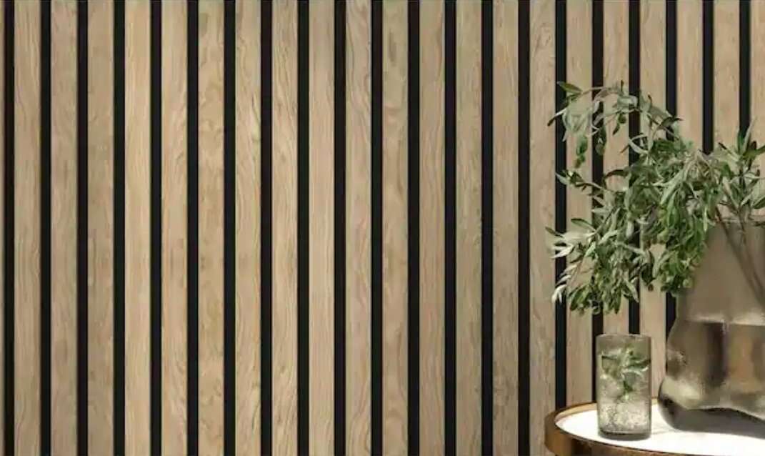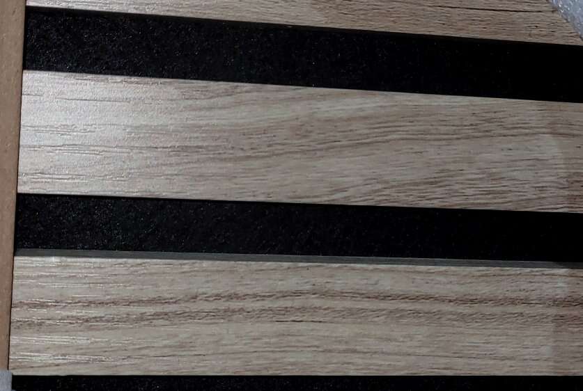 New in the box, 1 light walnut panel available. The acoustic slat vinyl wall panel range is a beautifully designed wood strip decorative wall and ceiling panel which boasts high-quality acoustic properties. The panels can be easily applied to both walls and ceilings - modern styling personified in every way. The natural wooden range is produced with a luxury quality, smooth wood veneer finish. Wood strips with a clean, modern appearance are mounted onto a uniquely designed, recycled acoustic felt material. Fast and simple installation allows you to quickly transform any space Each box contains 1 panel measuring 94 in. x 24 in., covers about 15.4 sq. ft. These panels will join next to each seamlessly with no join line showing.