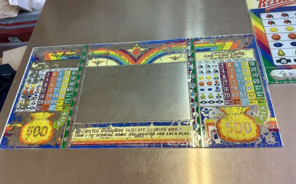 Awesome slot machine glass from the 1940’s! One panel is in awesome condition! The other panel is starting to lose graphics. Awesome Collector items! Neither panel is broke or cracked! 25x12.5