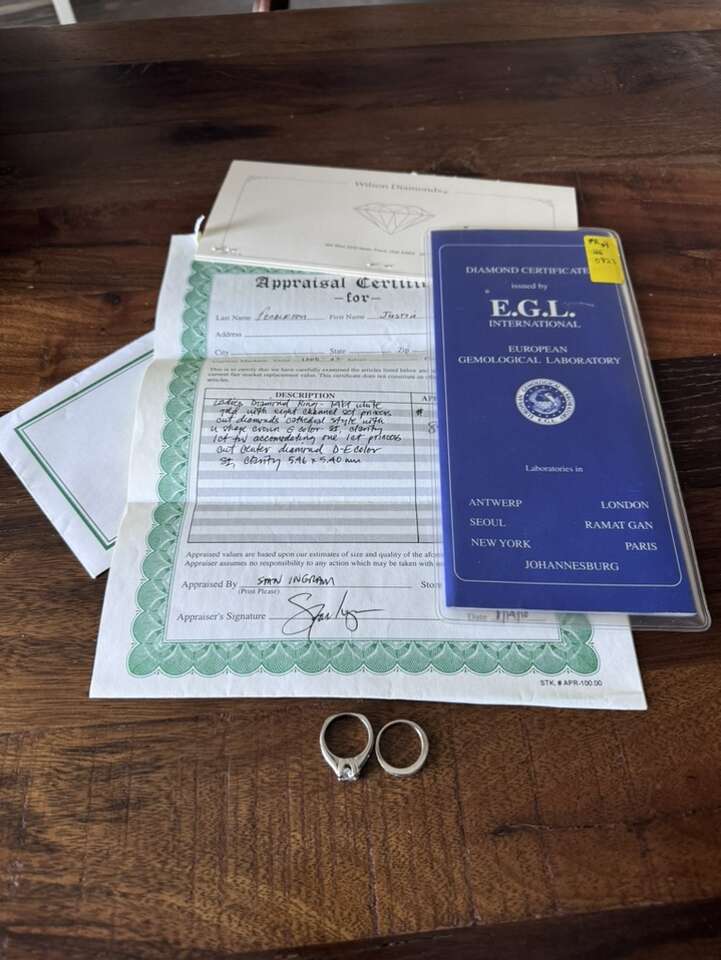 Gorgeous princess cut engagement ring and wedding band. All have been appraised with a total value of over $10,000. Engagement ring contains a 1.00 carat vs2 stone with H color. This is a great value. Rings were recently re-dipped and cleaned. Please text with any questions.