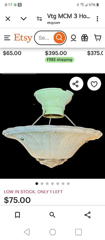 2- Vintage Ceiling Light Lamp Shade Globe. 3 holes. Floral Frosted Glass Very Good Condition. Cash only. Local Pick up. OBO