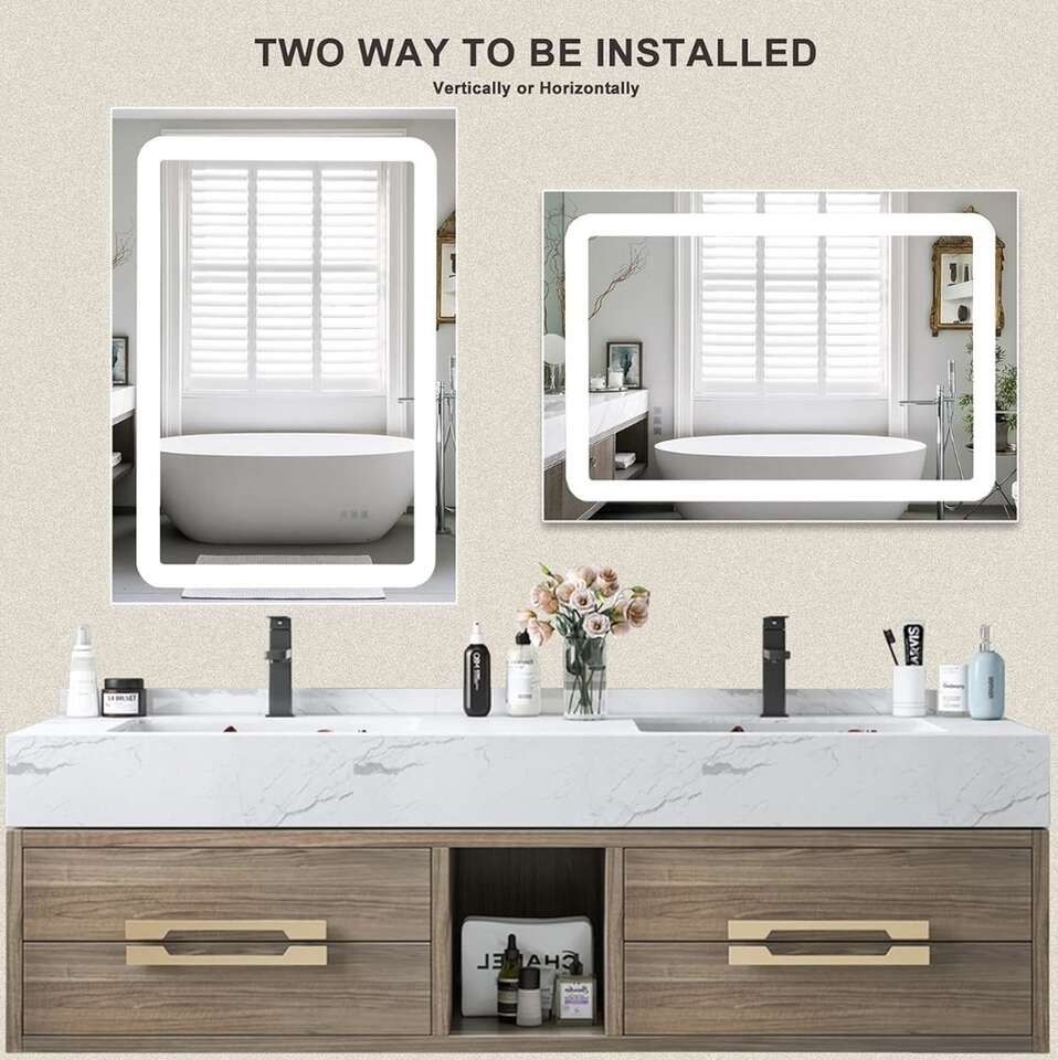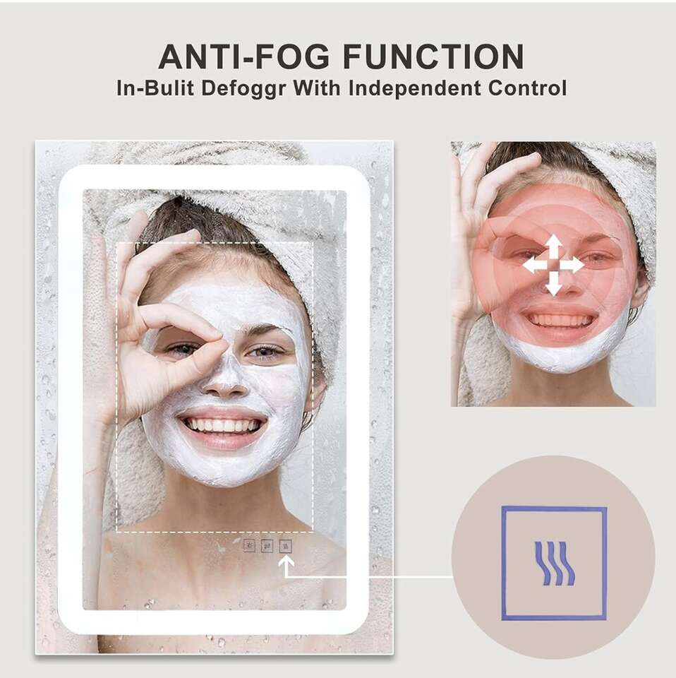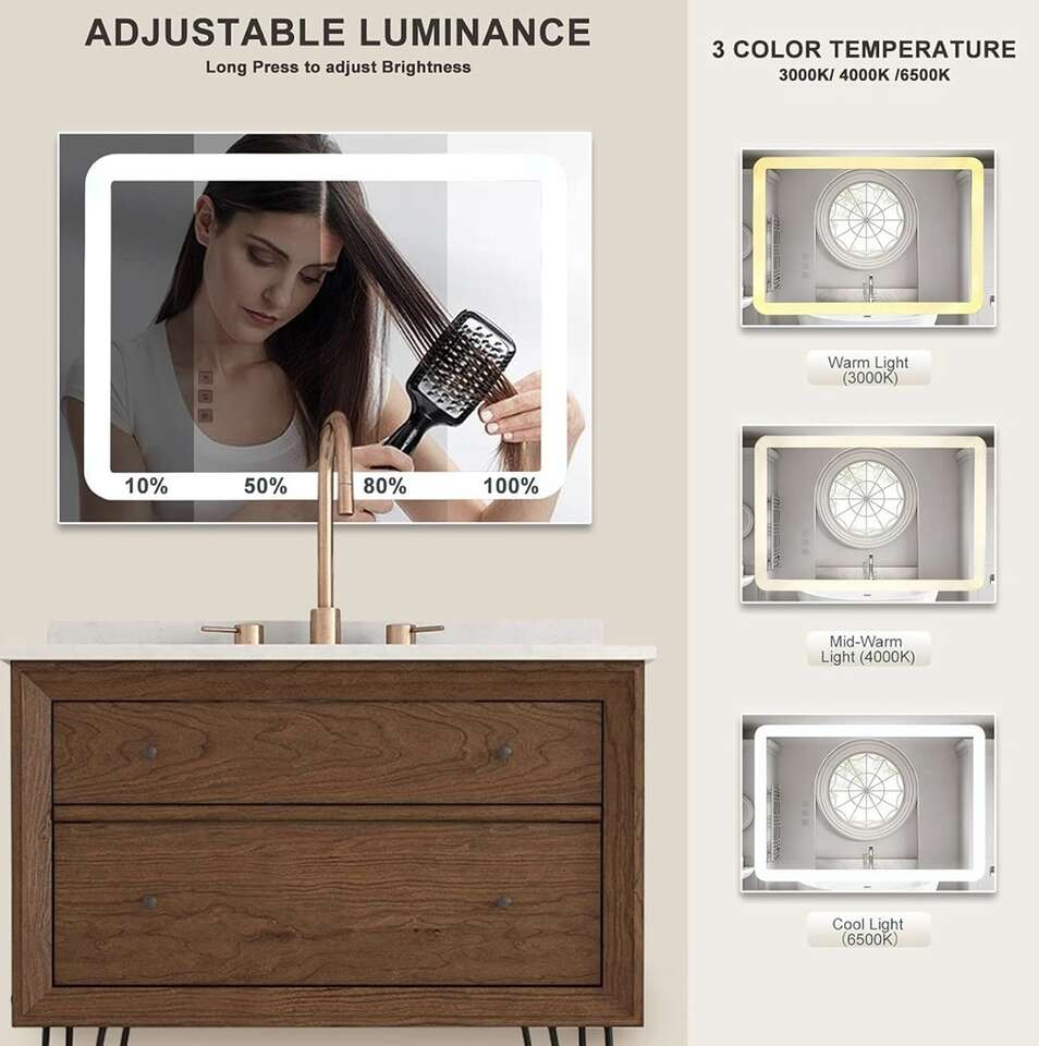Anti-Fog Function: Built-in defogger ensures the LED vanity mirror stays clear and fog-free. The anti-fog switch is a separate control, which is safe and energy-saving. You can turn it on and off according to your need.