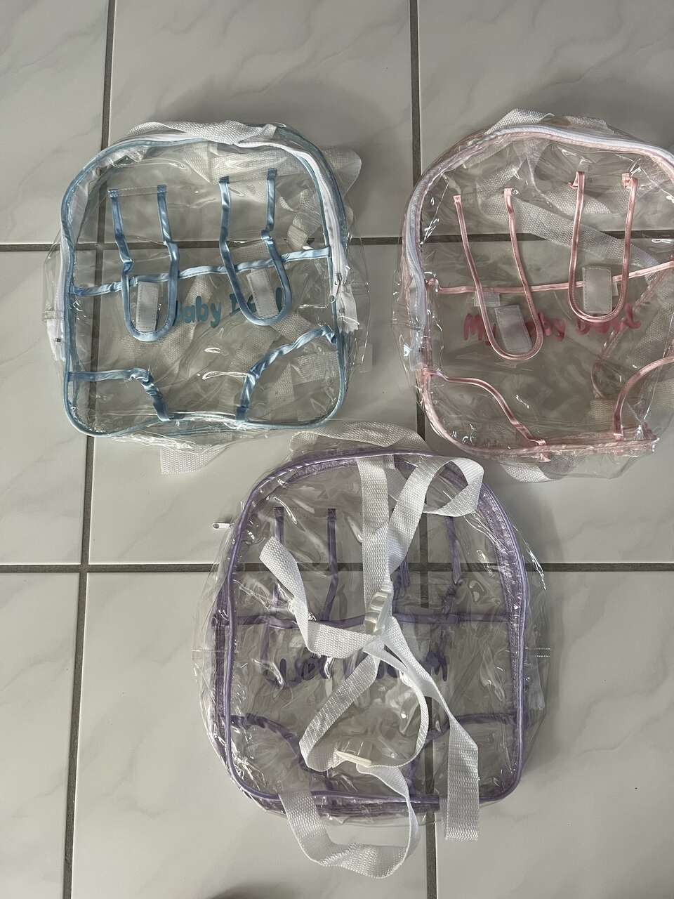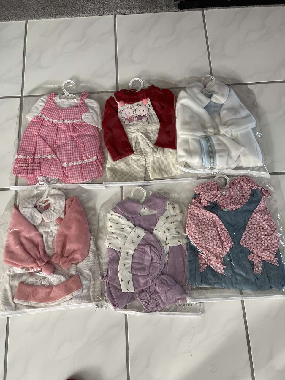 Beautiful doll the size of a baby for $75.00. Fun for kids. Adorable and cute. The little outfits are $15.00 each. Shoes $7.50. Back packs $15.00 each.