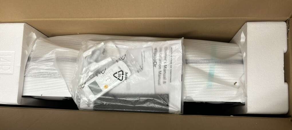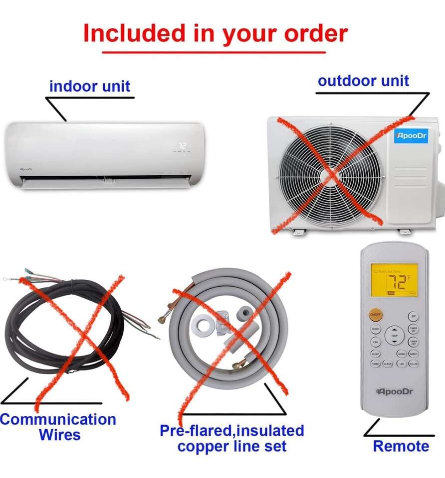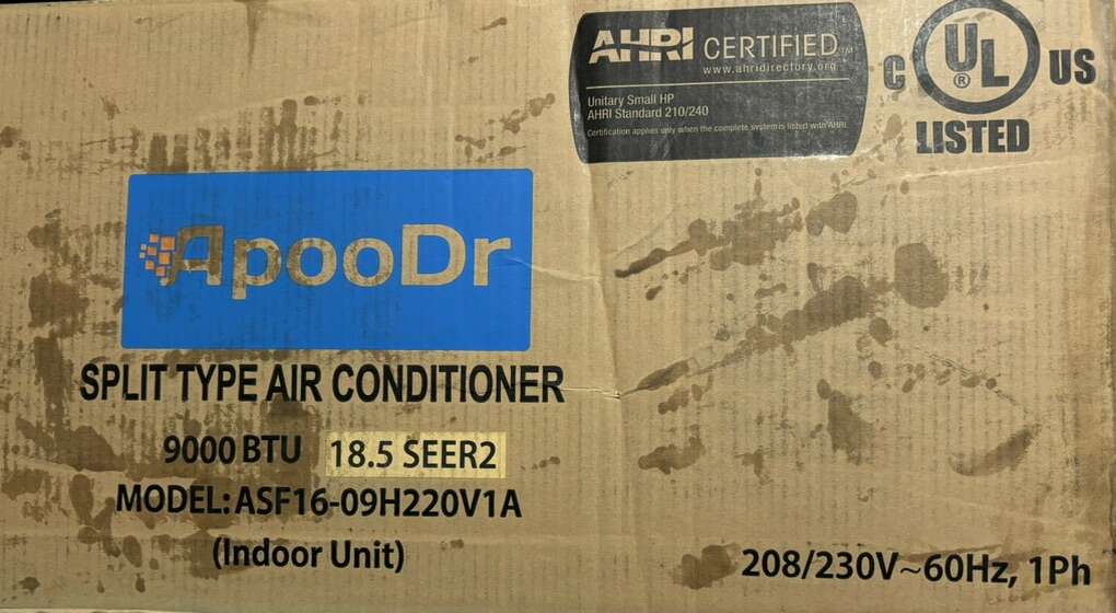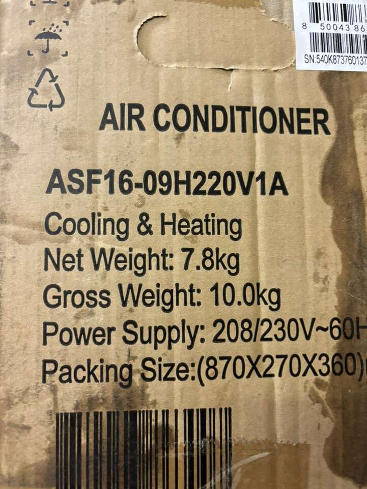 Description- 9000 BTU 18.5 SEER2 split type air conditioner INDOOR UNIT AND REMOTE CONTROL ONLY (the other box containing the outdoor unit and hoses was lost in the mail). See photos for more product information and specifications.