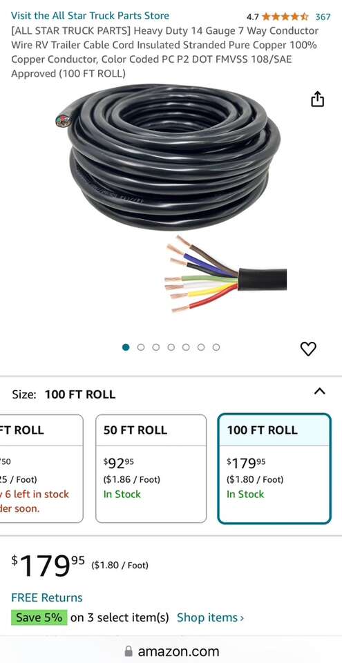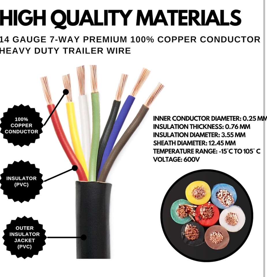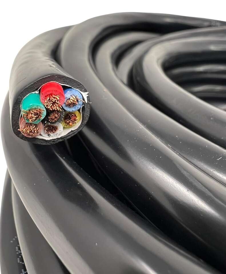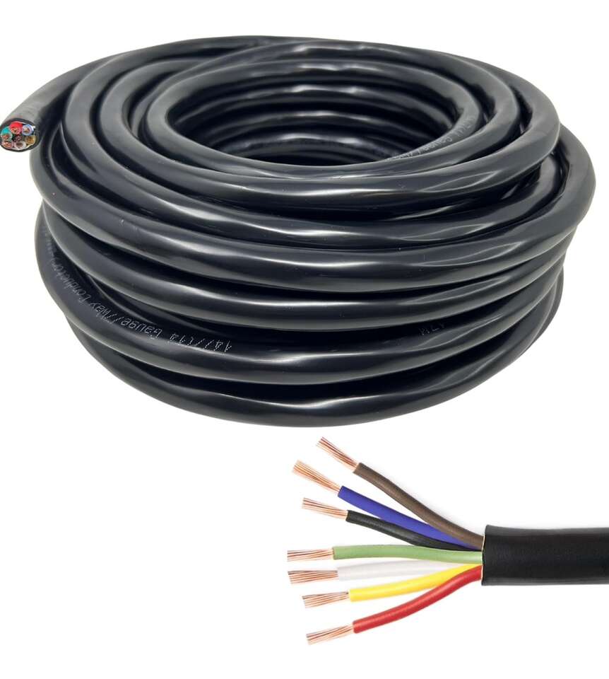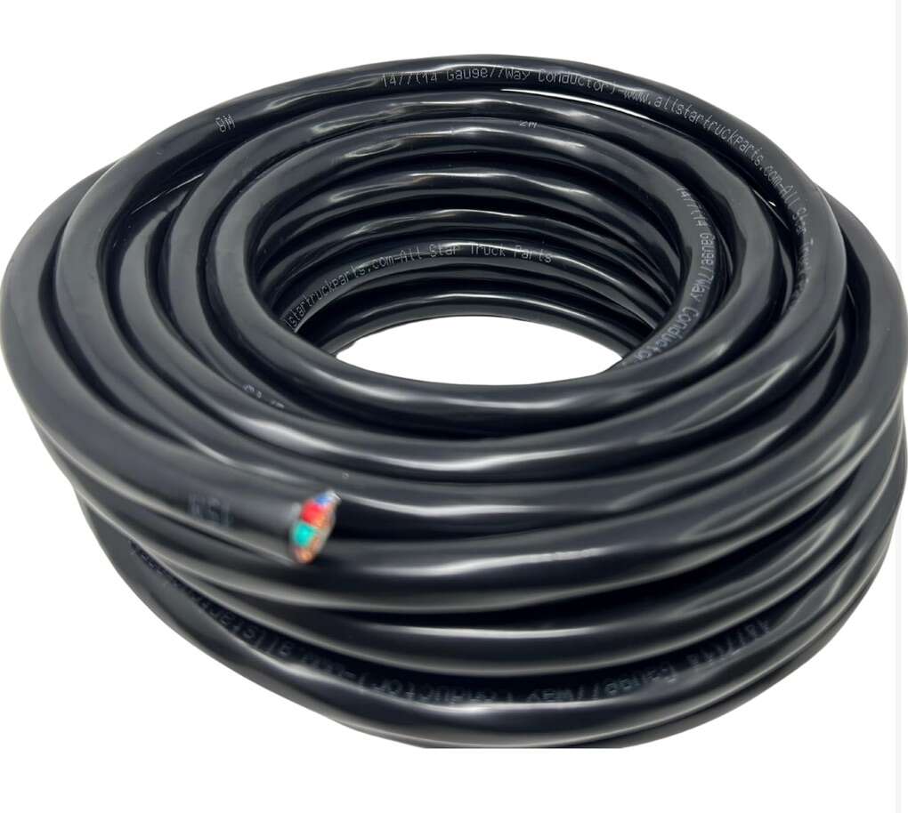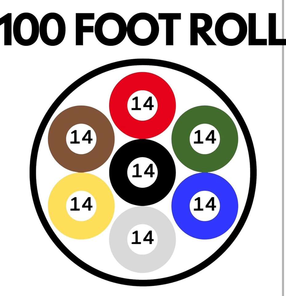 Description- 100’ Roll of heavy duty 14-gauge 7-way conductor RV/trailer wire. See photos for more product information and specifications.
