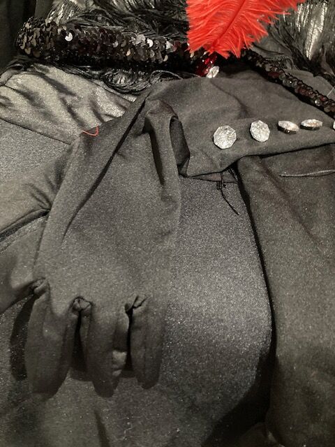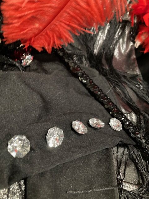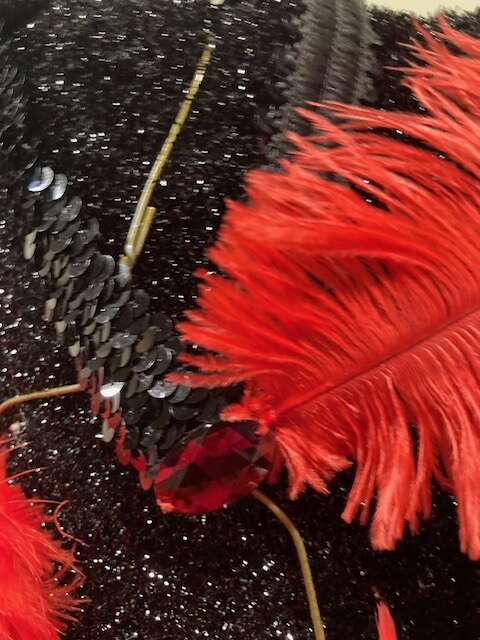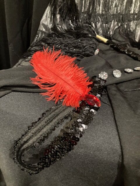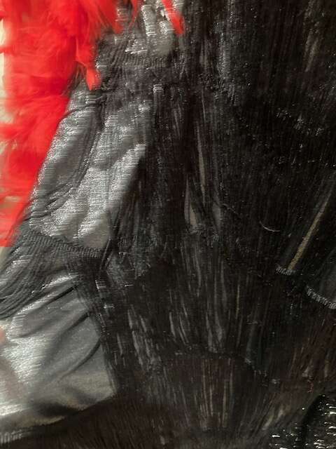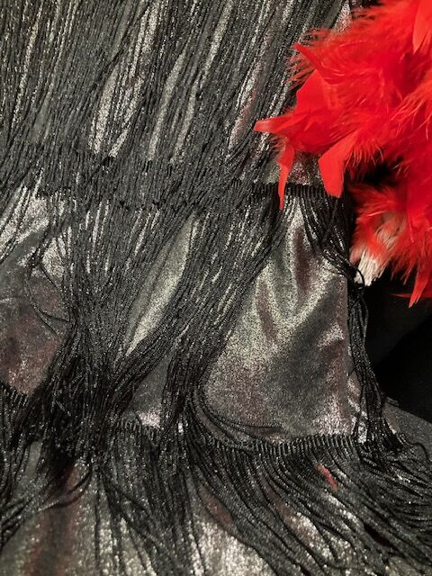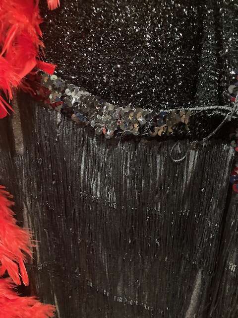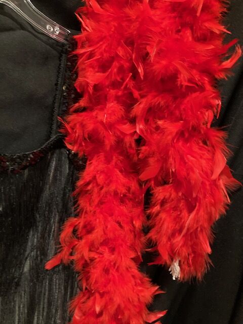 ROARING 20's FLAPPER GIRL (Fringe dress, feather boa. rhinestone studded gloves, feather headband, long cigarette holder) Size Adult M $35 Located in East Sandy