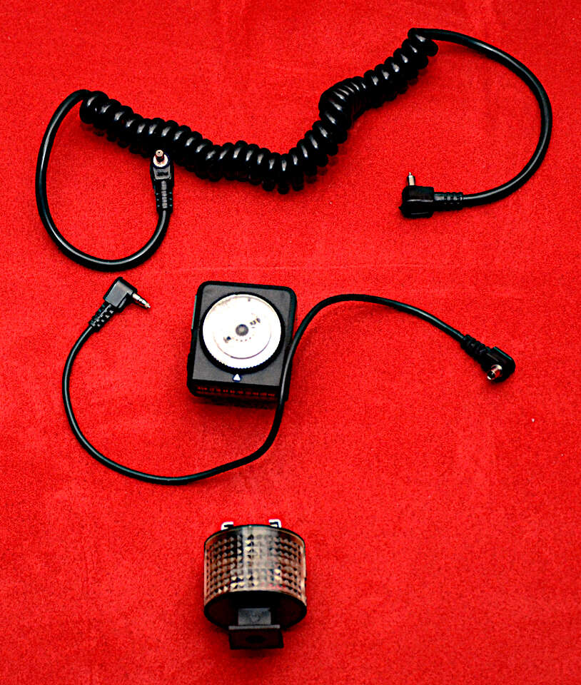 The charger is also included. Included, but not shown, are a case for the flash, boxes for the sensor and trigger, and instructions for the flash, sensor, and trigger.