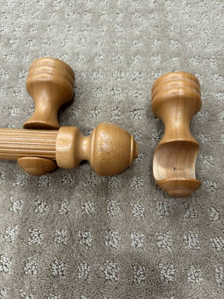 6 foot wood decorative curtain rod with wall hanging accessories.