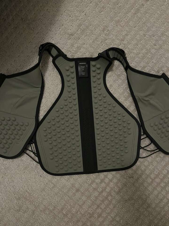 Adjustable/can cinched down to fit body better. Best fitting weighted vest I’ve tried on. It’s about 5 pounds. Easy to move in. Retail $289. Never worn, just try on. I didn’t end up using it as I intended.