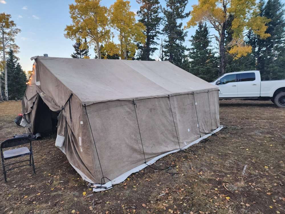 Venmo14 x 16 Davis Tents tan sunforger canvas wall tent for rent $40/night. 10% deposit required to hold dates, balance due at pickup Copy and paste this link to check calendar availability: https://calendar.google.com/calendar/embed?src=120ef148599104bb76596b6facaee7baa056a429c68d685fbef097b835bdd732%40group.calendar.google.com&ctz=America%2FDenver Sets up with an internal frame of 1 inch EMT conduit and angle pieces 12 poles are 8 feet long, 6 are 4 feet long Together the poles are heavy The canvas is probably a 14 or 16 oz canvas and very heavy For other than short distances, the canvas is a 2-man carry The storage bag does have convenient handles for this Doors zip closed Walls DON’T need to be guyed out to stakes but it is a good idea (stakes and guy lines included) Floor is a separate piece of coated canvas Must return clean and dry It is older, very few patches and well maintained, warm, and dry Sunforger factory waterproofing is very reliable 10 x 12, 11 x 12, and 12 x16 sizes also available see listings for details Message me to arrange pickup and return times Cash or Venmo