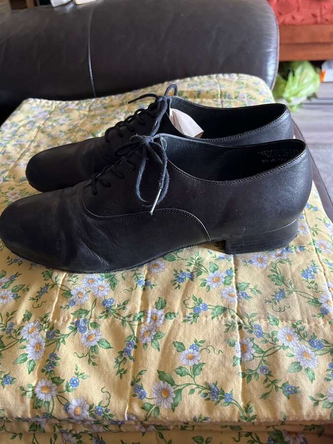 Dancesport Capezio,, leather, black, suede soles, heels have little wear, suede brush included.