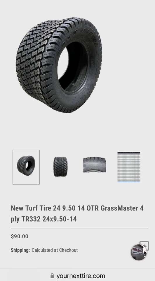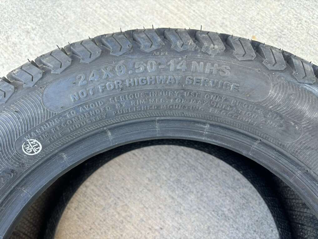 Description- 24X9.50-14 4-ply tubeless lawnmower/tractor tire. See photos for more product information and specifications.