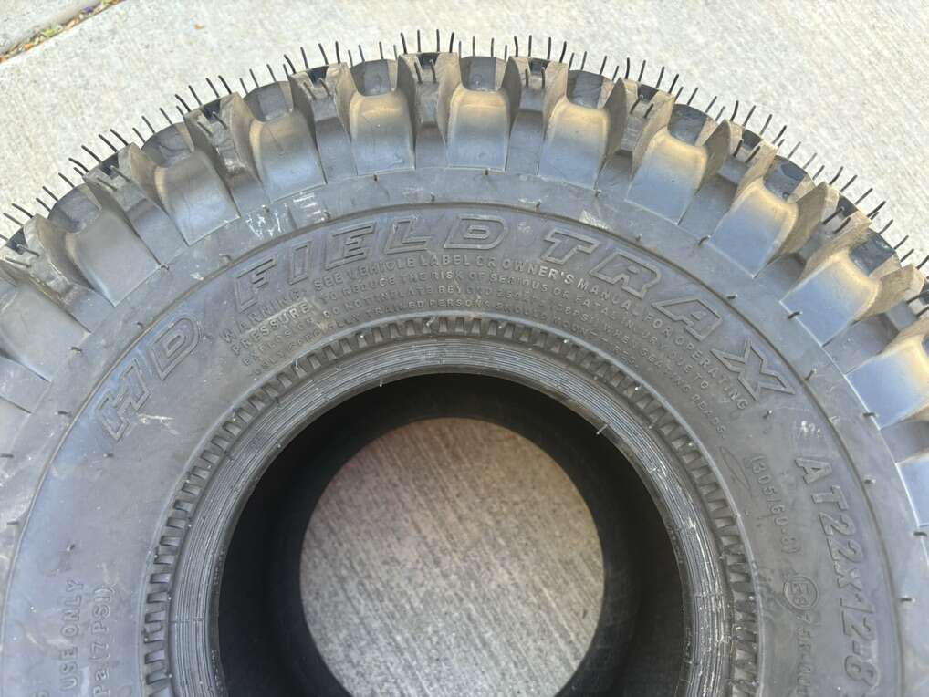 Description- AT22X12-8 HD Field Trax tubeless ATV/UTV/lawnmower/tractor tire. See photos for more product information and specifications.