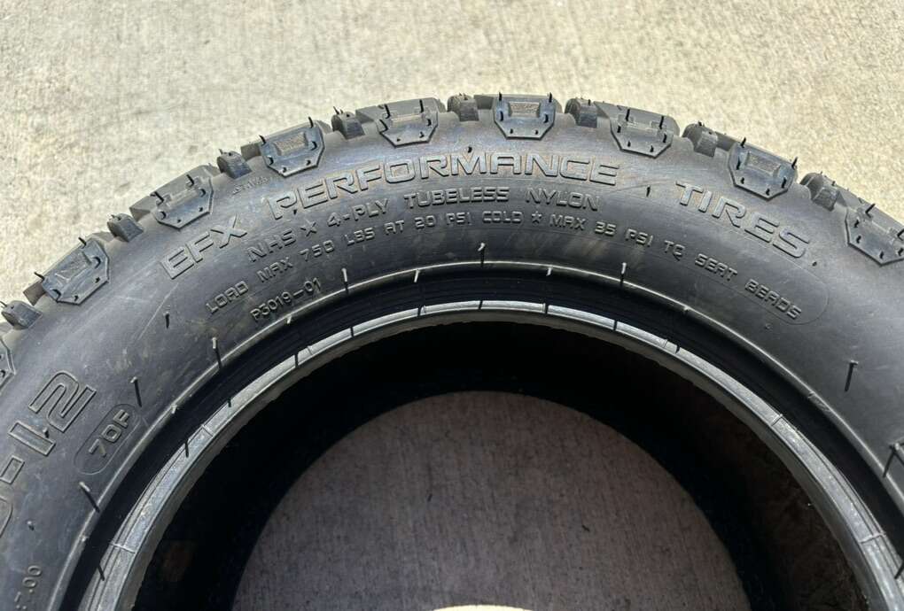 Description- HAMMER 23X9.50-12 tubeless 4-ply ATV/UTV/golf cart tire. See photos for more product information and specifications.