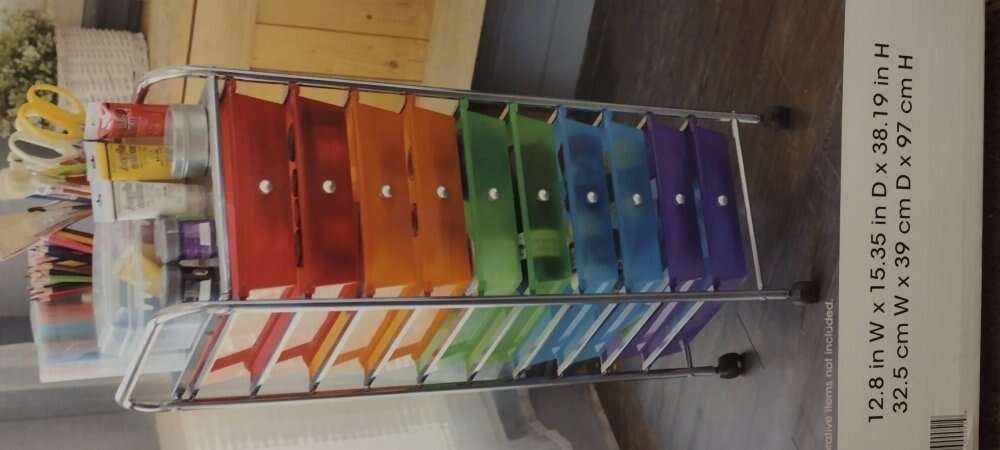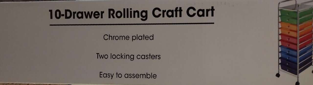 Brand New still in the box Colorful Craft Cart. 10 different color drawers with a chrome frame and 2 locking castors and 2 non-blocking castors. Use for Art supplies, sewing supplies, tools, papers, fabrics, or pretty much anything you want. Get organized with this simple storage solution 10 drawer craft cart. Retail is $40.