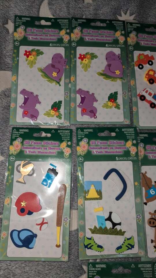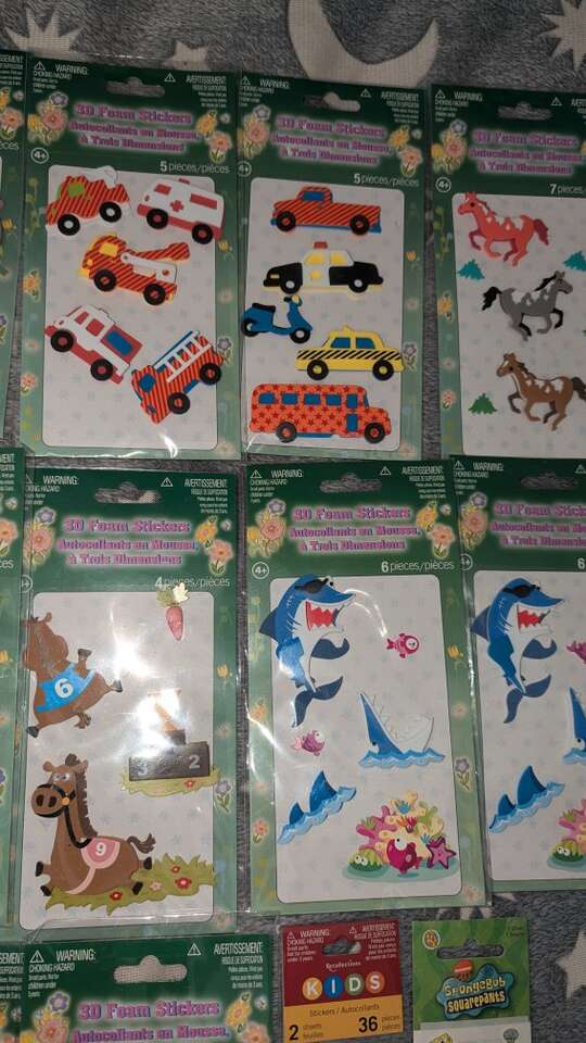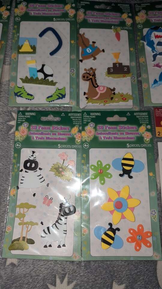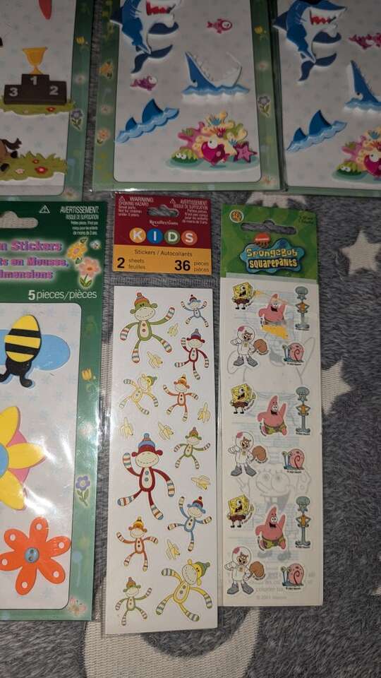 Set of 12 puffy foam 3D stickers plus Sock Monkey and Sponge Bob strips.