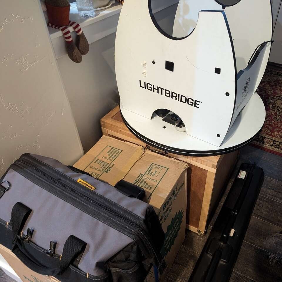 The mirrors are older, yet in decent shape. A few minor abrasions to the primary's outer edge are visible in the last picture but never in the eyepiece. The frame has some wear, but it's fine. It comes with a shroud, laser alignment system, and three different eye pieces.