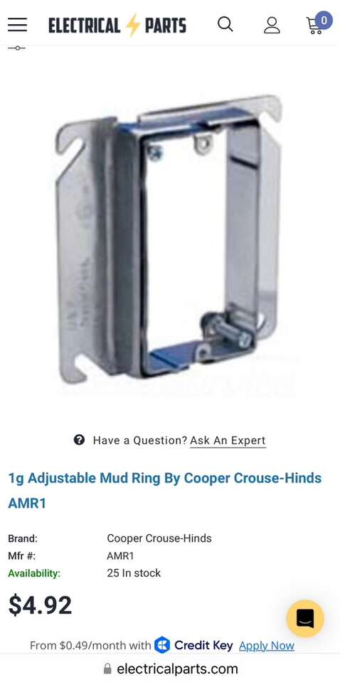 Description- CASE OF 25 Crouse-Hinds 1-gang adjustable mud ring. See photos for more product information and specifications.