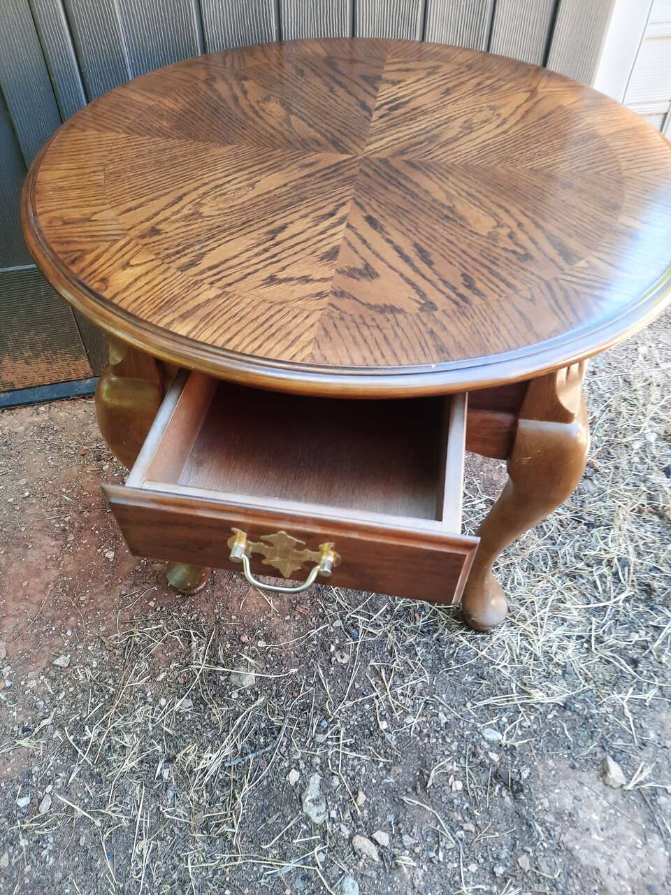 Venmoround side table with drawer size around 25 in by 25 in w 21 in tall located in hurricane same day appointment no next day or later appointment will be made check back when your available to come out pick up only no holds only available after work when I say I'm available in evenings during the week weekend times very payment ways at time of purchase cash in hand or venmo in person completed an verified in the app