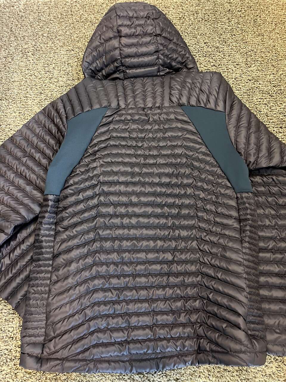 Mens size small. Worn once, brand new. Product description: Our premium ultralight has a streamlined fit that's built for mobility. Comfort is further enhanced with the soft, recycled ripstop polyester shell and its adjustable drawcord hem. But the real crux of this hoodie is the high-loft Premium Goose Down insulation. Maximum warmth. Minimum weight and bulk.