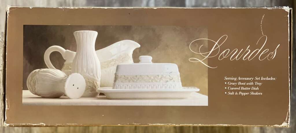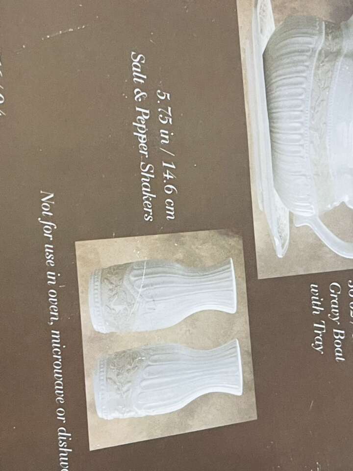Set includes: Butter Dish Gravy Boat Salt Shaker Pepper Shaker