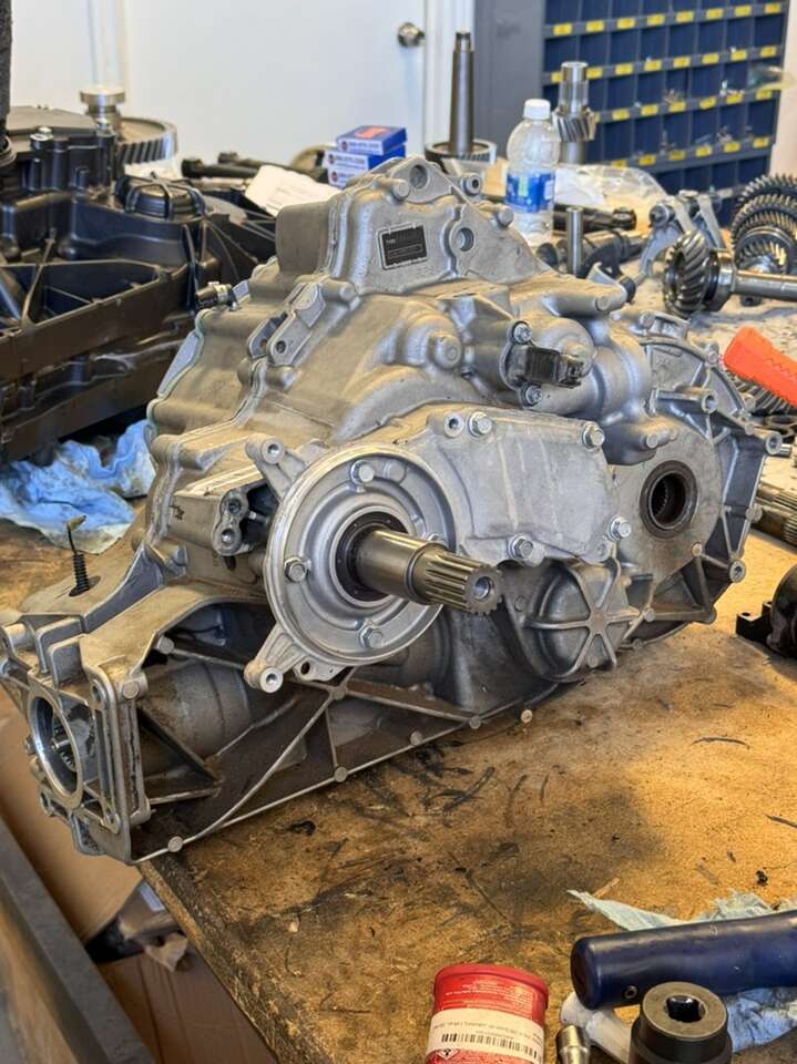 Rebuilt transmission with new bearings and seals. The case has been vapor honed to bring it back to a new state