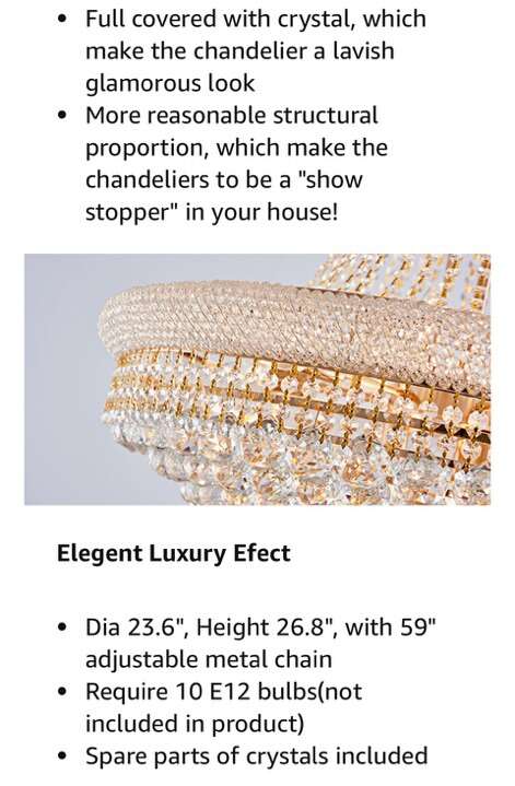Modern Gold Crystal Chandelier Light - Diameter 23.6 Ceiling Haning Chandelier, Pendant Lighting for Living Room, Dining Room, Foyer, Entryway, Hallway.Does not come assembled 23.6L x 23.6W x 26.8H
