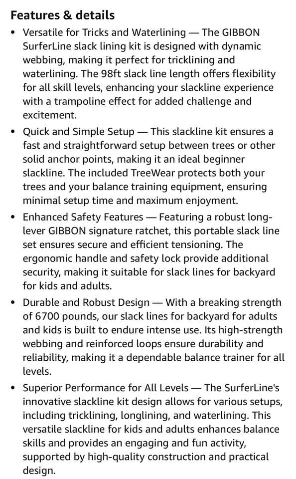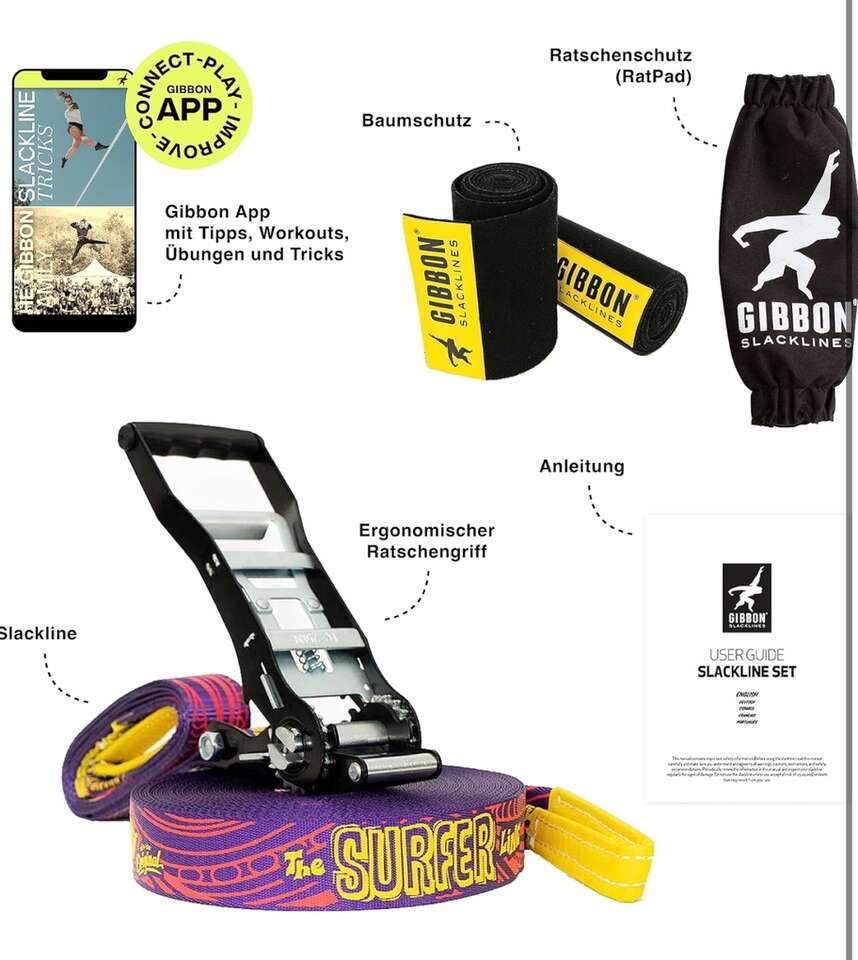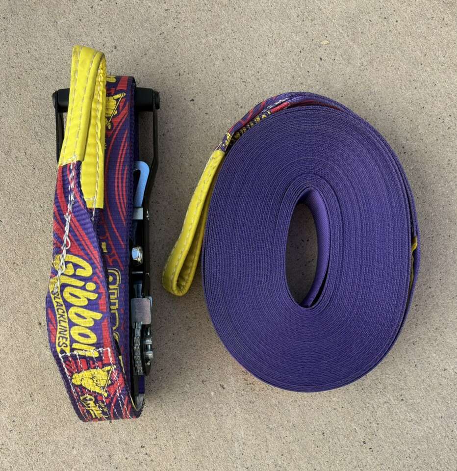 Description- 2“ x 98‘ Surfline slackline (90’ line with 8’ ratchet strap) with reinforced loops. Designed for tricks and distance. *ALTHOUGH THIS ITEM IS BRAND NEW, IT IS OUT OF ITS ORIGINAL PACKAGING. See photos for more product information and specifications.