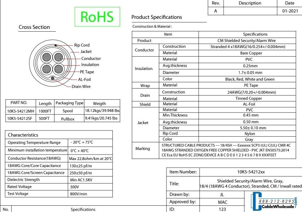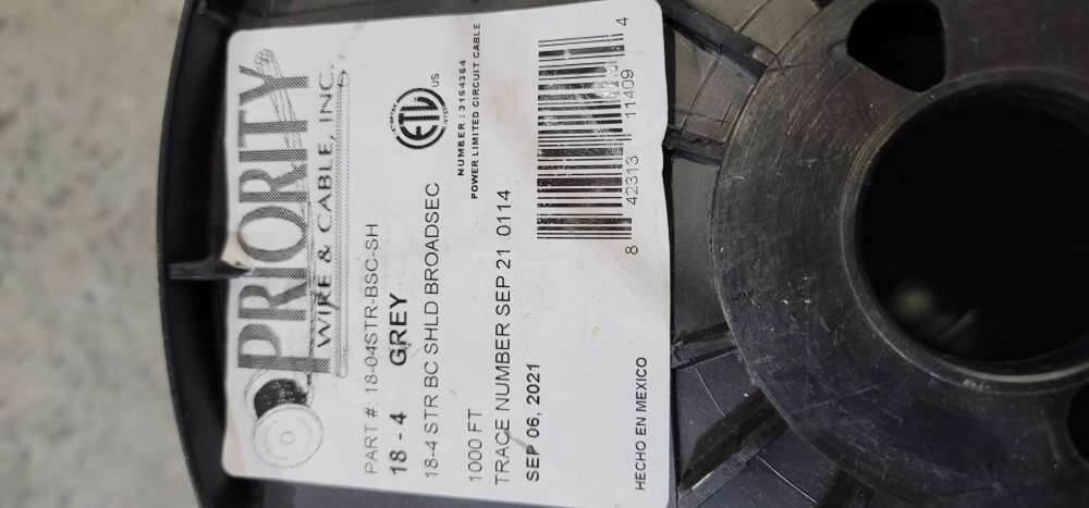 Shielded Security/Alarm Wire, Gray, 18/4 (18AWG 4 Conductor), Stranded, CM / Inwall rated, Pullbox