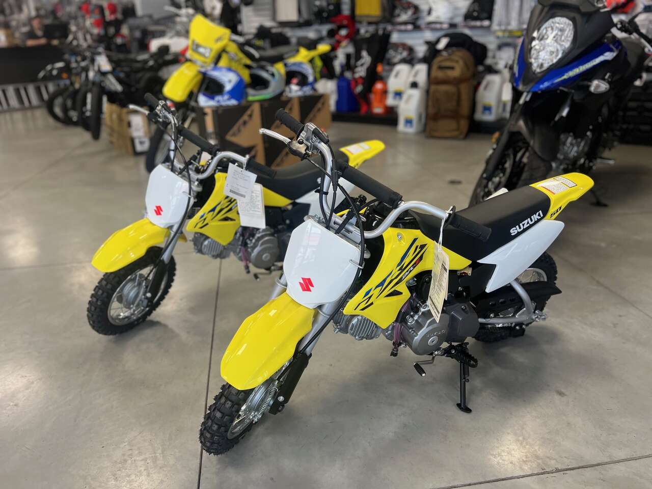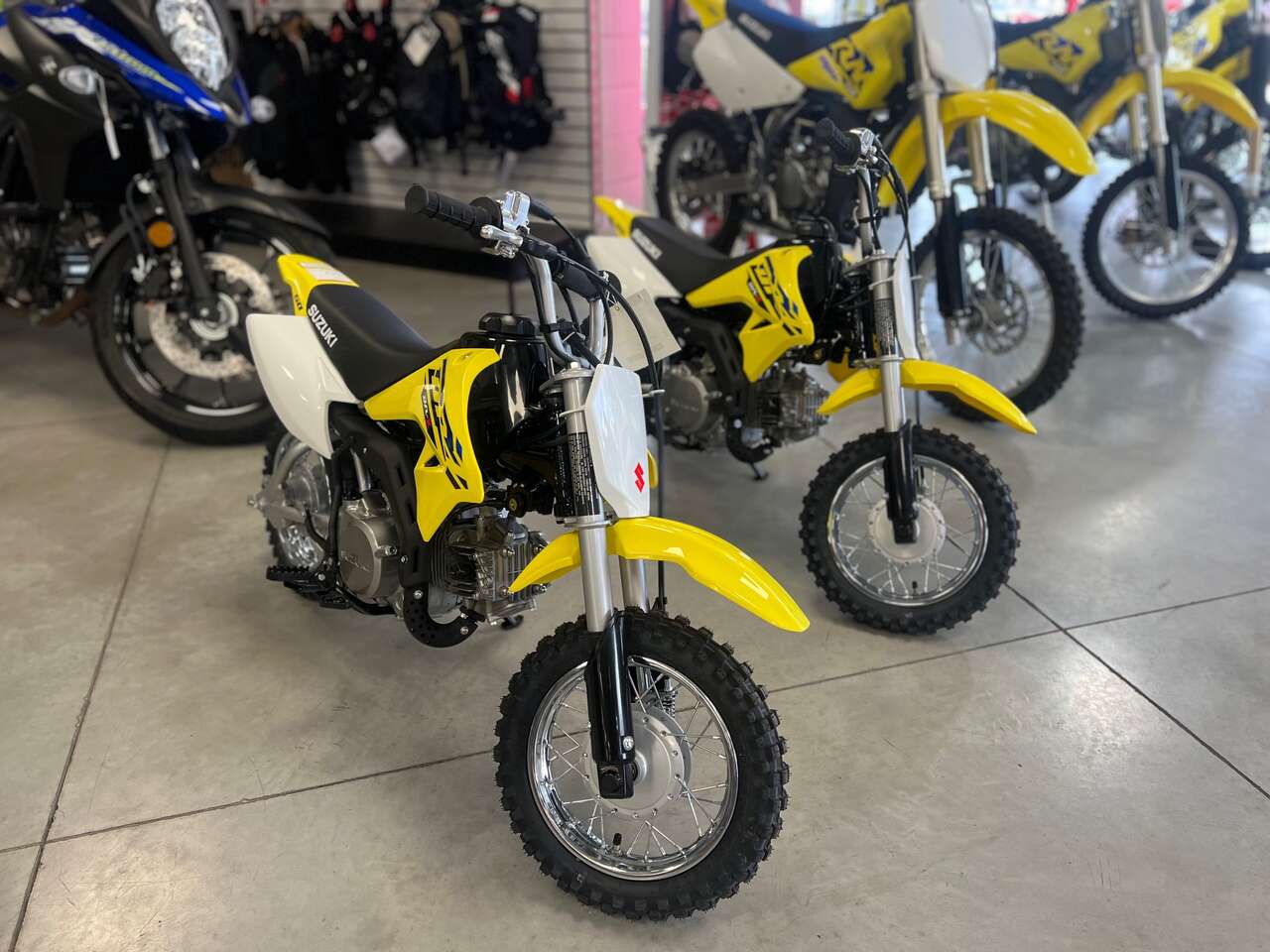 The 2025 Suzuki DR-Z50 is ideal for young, beginning riders. The DR-Z50 wraps big bike looks around a platform developed to keep adults in control of the ride. This Suzuki-built minibike brings ease and convenience to riders just getting started on two wheels.