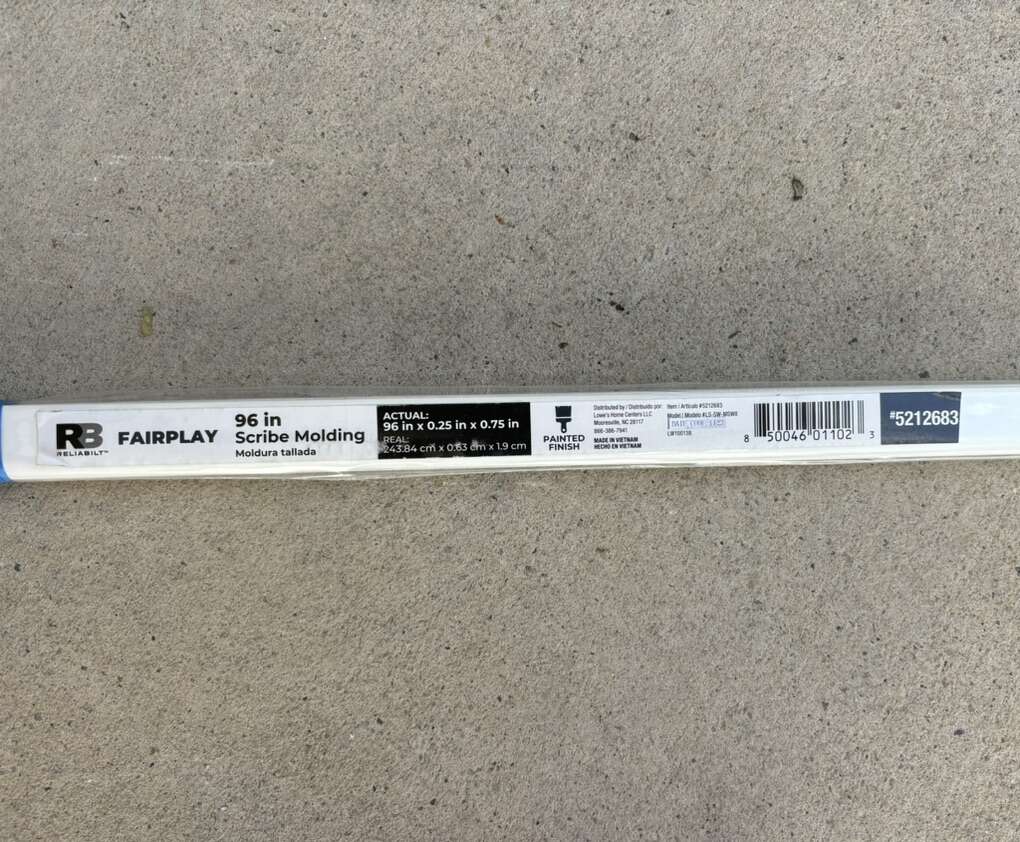 Description- 16’ (two 8’ pieces) of FAIRPLAY scribe molding. Comes white, but his paintable. See photos for more product information and specifications.