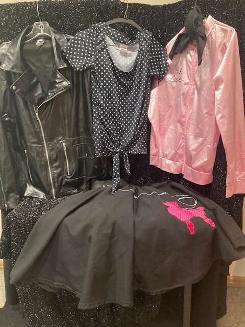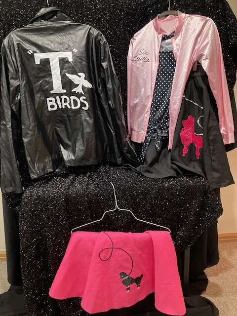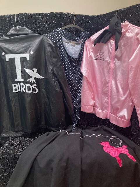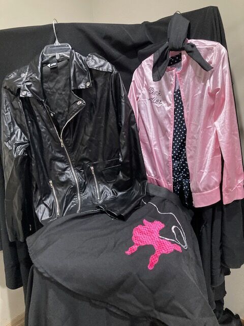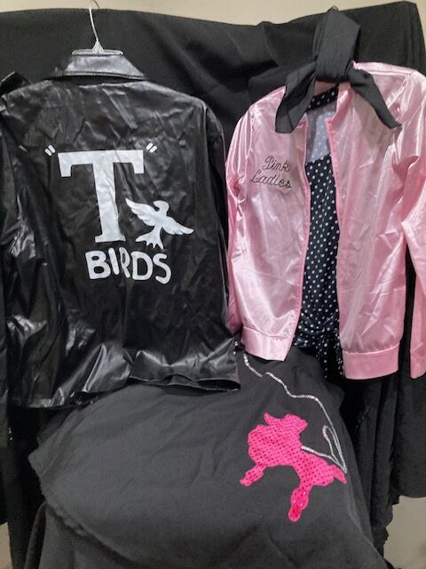 GREASE Thunderbird Jacket-Adult L $20 4-piece Pink Ladies-(jacket, shirt, skirt, scarf) Adult S $25 Located in East Sandy