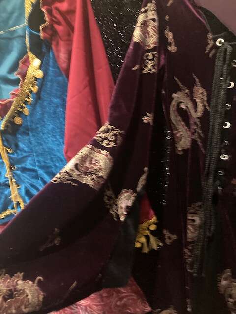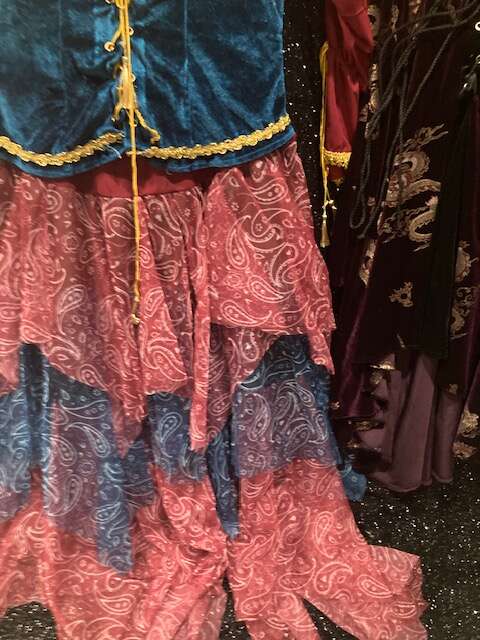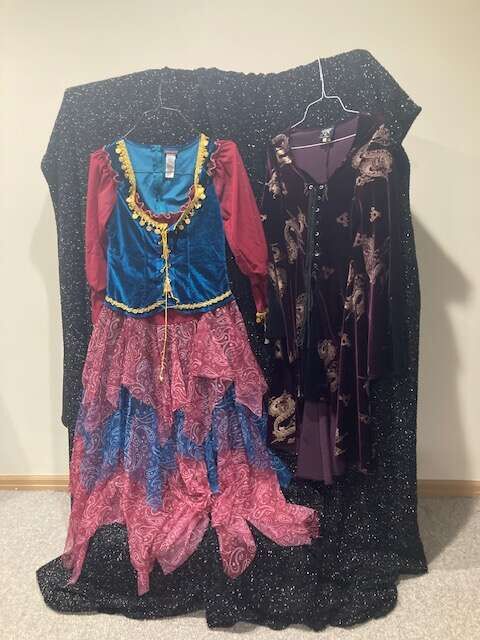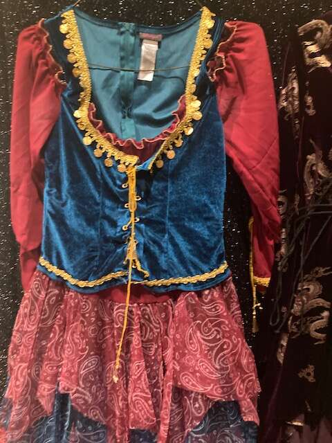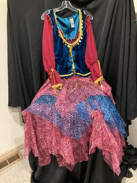 GYPSEY and FORTUNE Teller (Velvet Dragon) Dresses...Stretch Velvet- size Adult L (Shrine-Hollywood California) $25 Tiered Gypsey size Adult XL $25 Located in East Sandy