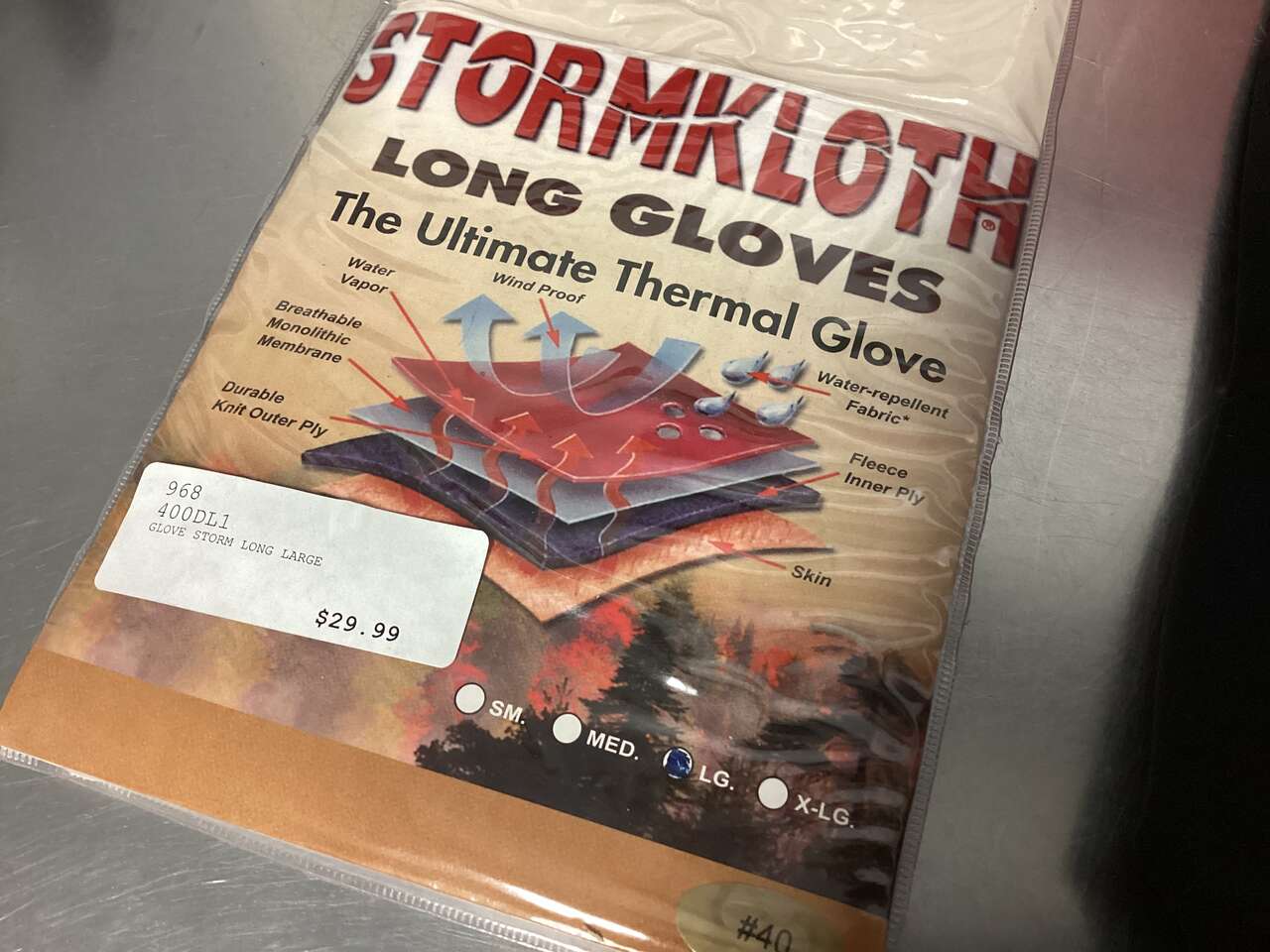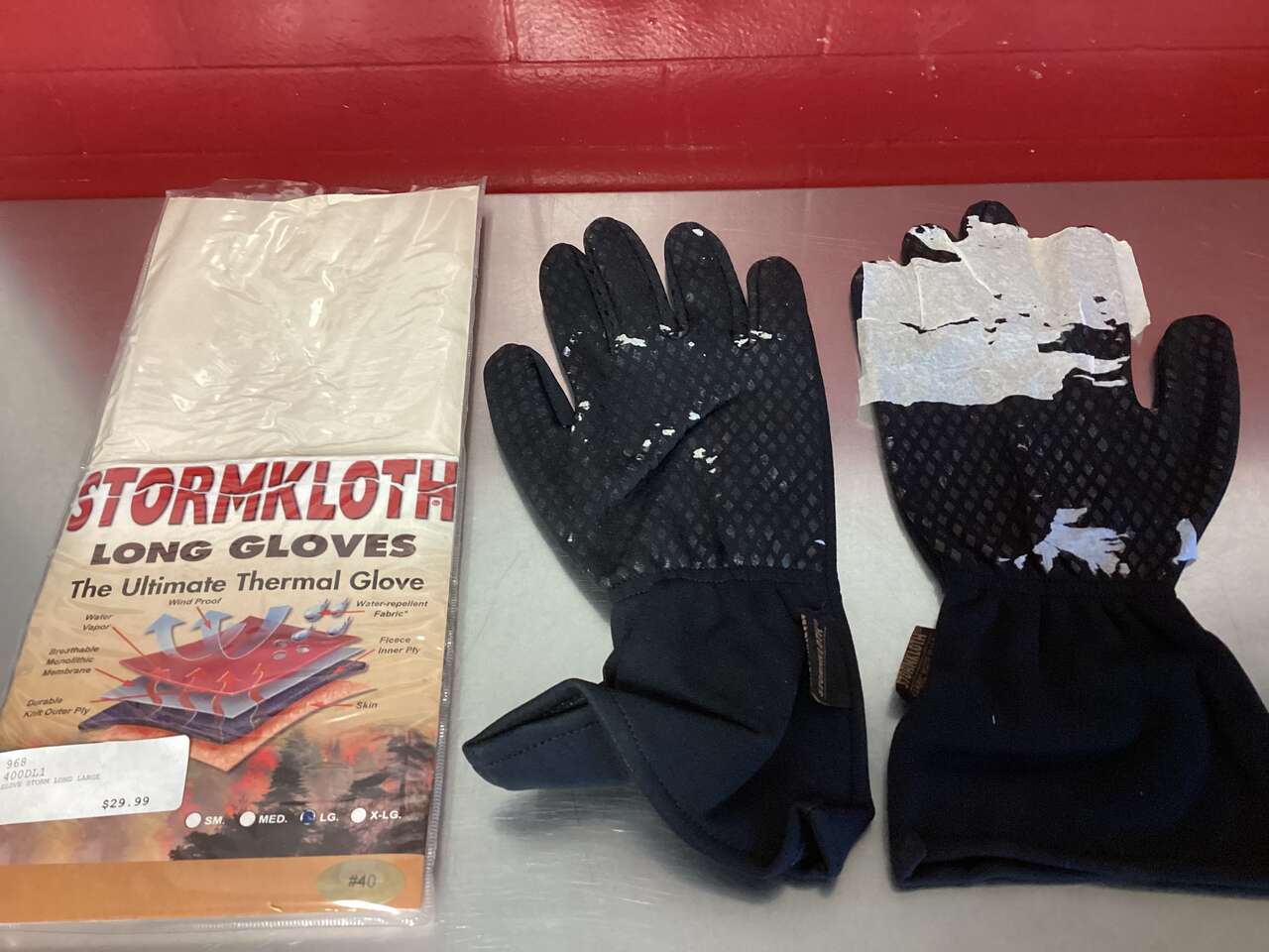 These are New Thermal Gloves from STORMKLOTH (retail $30) These have been shelf pulls due to the tissue paper sticking to the rubber grips on the gloves. (due to moisture in storage). Please see pics closely for further details on items issue. The tissue paper will come off should you want to take the time. This does not affect the gloves appearance or function in any way. So if you want to take the time to pull off the tissue paper these gloves are great for the hunter. 1- LONG GLOVES ~ Large, XLarge 2 - SHORT GLOVES ~ XLarge only If item is listed its available. I also have other hunting apparel available. Please check out my other listings. Item in provo, cash and pick up only, sry no venmo, thanks!