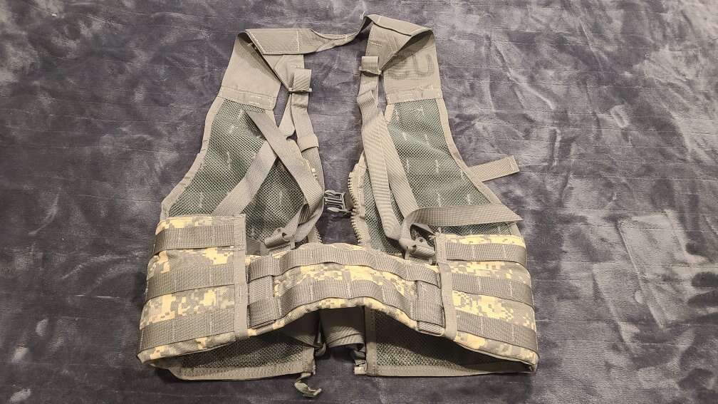 New unused SDS Official US Military Issue MOLLE II Army ACU FLC Fighting Tactical Assault Vest Carrier. Fully adjustable for most all sizes. This heavy duty, lightweight, and extremely adaptable tactical vest allows for customizable carrier access to your gear.