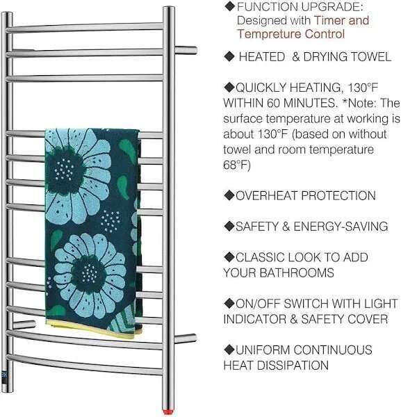 Brand New. In the box. HEATGENE Towel Warmer with Timer, Electric Towel Warmer with Temperature Control, Wall-Mounted Large 12 Bars Towel Racks with Built-in Timer, Plug-in/Hardwired Electric Towel Rails - Mirror Polish