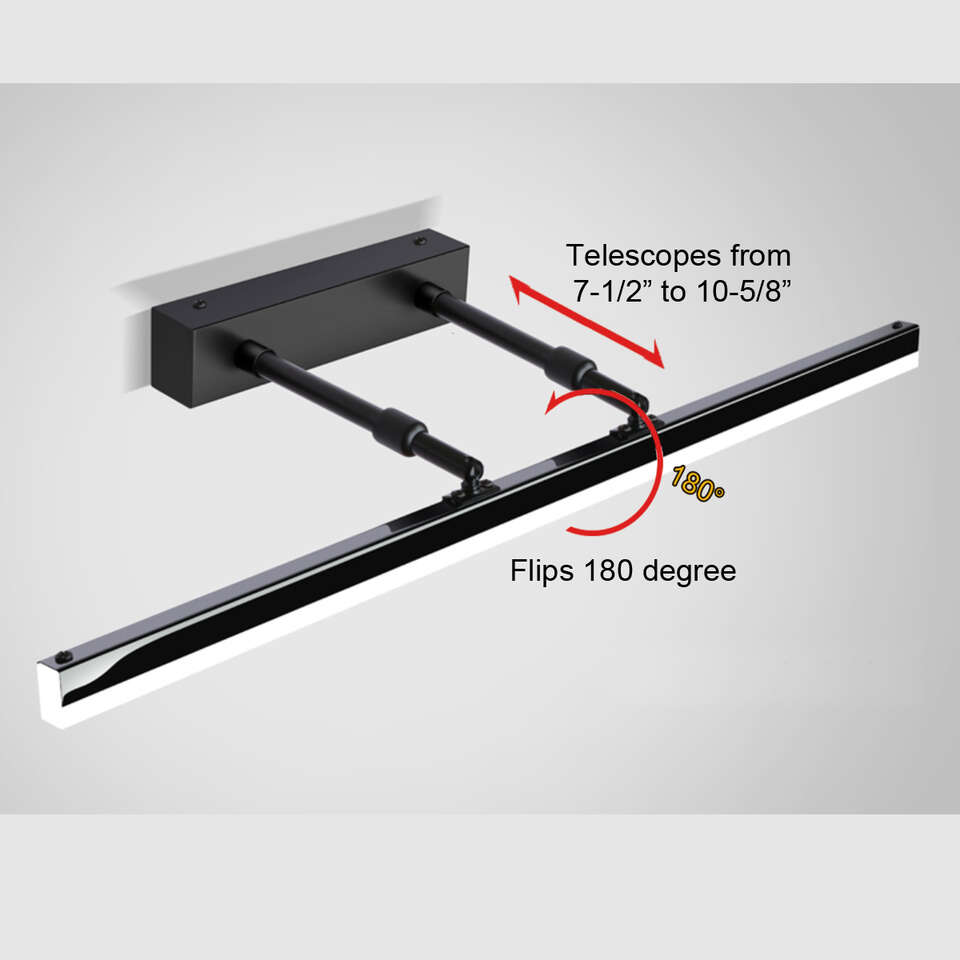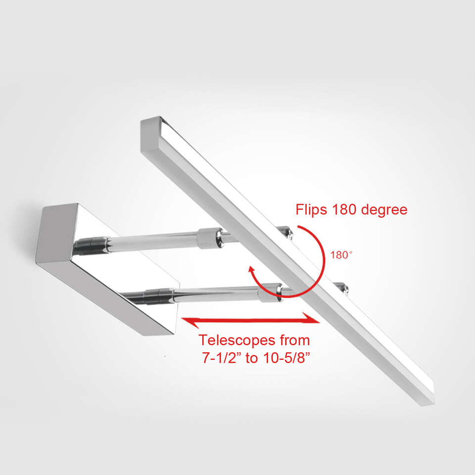 VenmoAt the intersection of practicality and modern style, you will find the New Mojo pivot telescoping vanity light. this light makes a statement with its contemporary design and ability to extend from 7.5” to 10 5/8” from the wall and pivot 180 degrees. If your intent is to add a touch of elegance and practicality to your bathroom, then you need to look no further than theNew Mojo pivot telescoping vanity light.