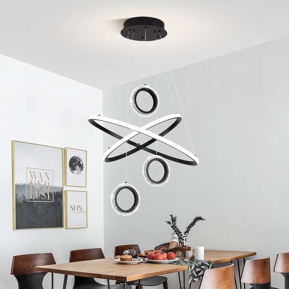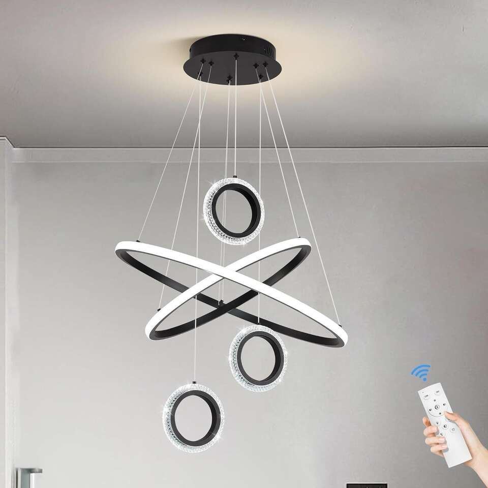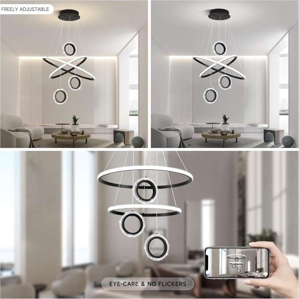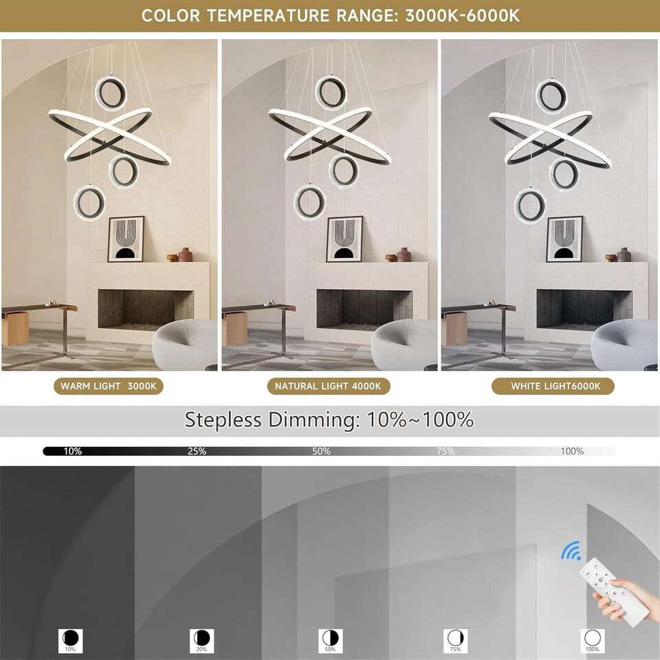 Retailer's Title: Modern Chandelier Modern LED Chandelier with Remote Dimmable Adjustable Hanging LED Chandelier 5 Rings Chandelier for Living Room Foyer Staircase Entrance Ceiling Light Fixtures
