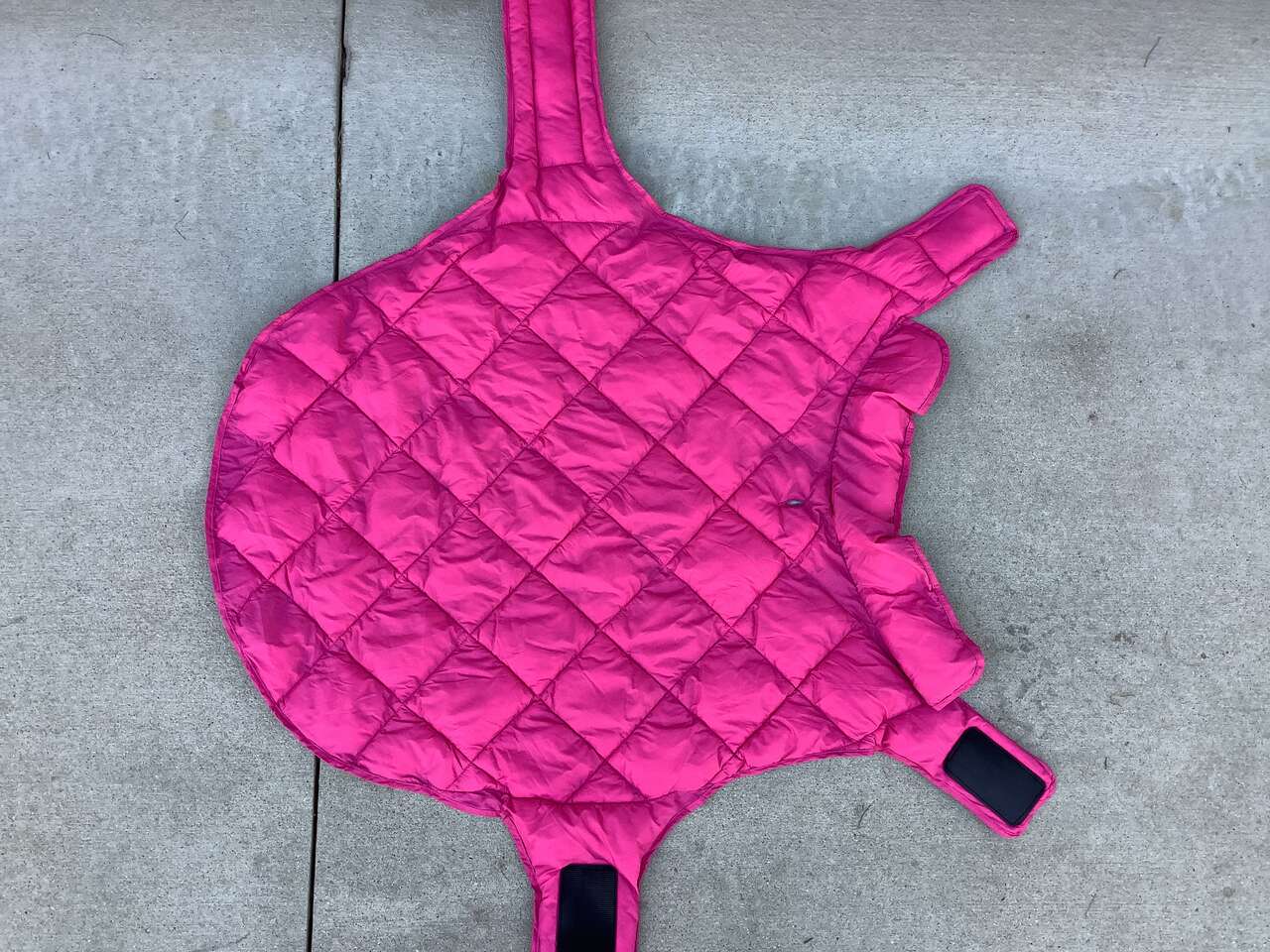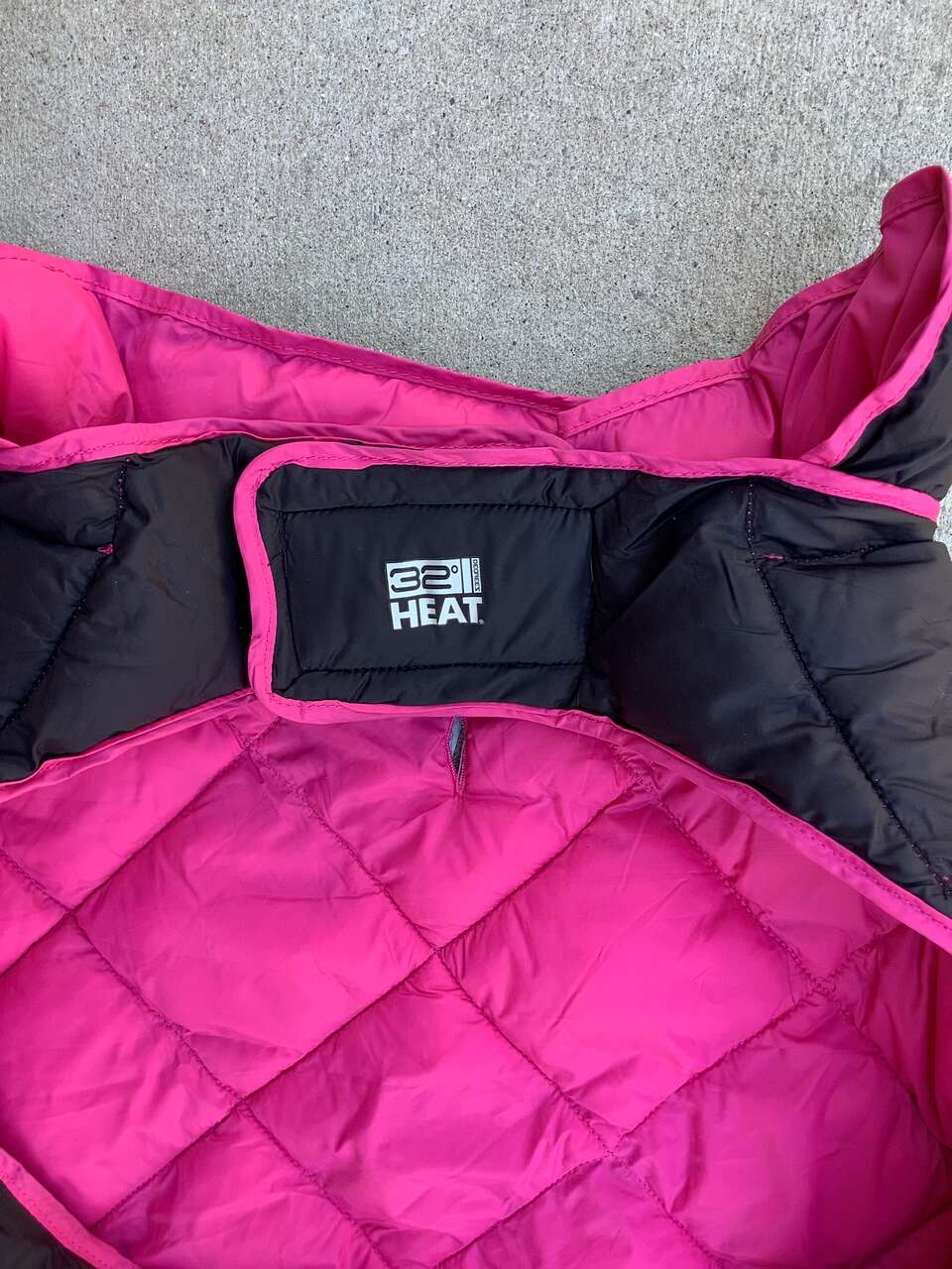 32 Degree heat Dog jacket interchangeable from pink to black in size LARGE. Measures 27 long by 29 wide. Text please, CASH only, pick up in Holladay area.