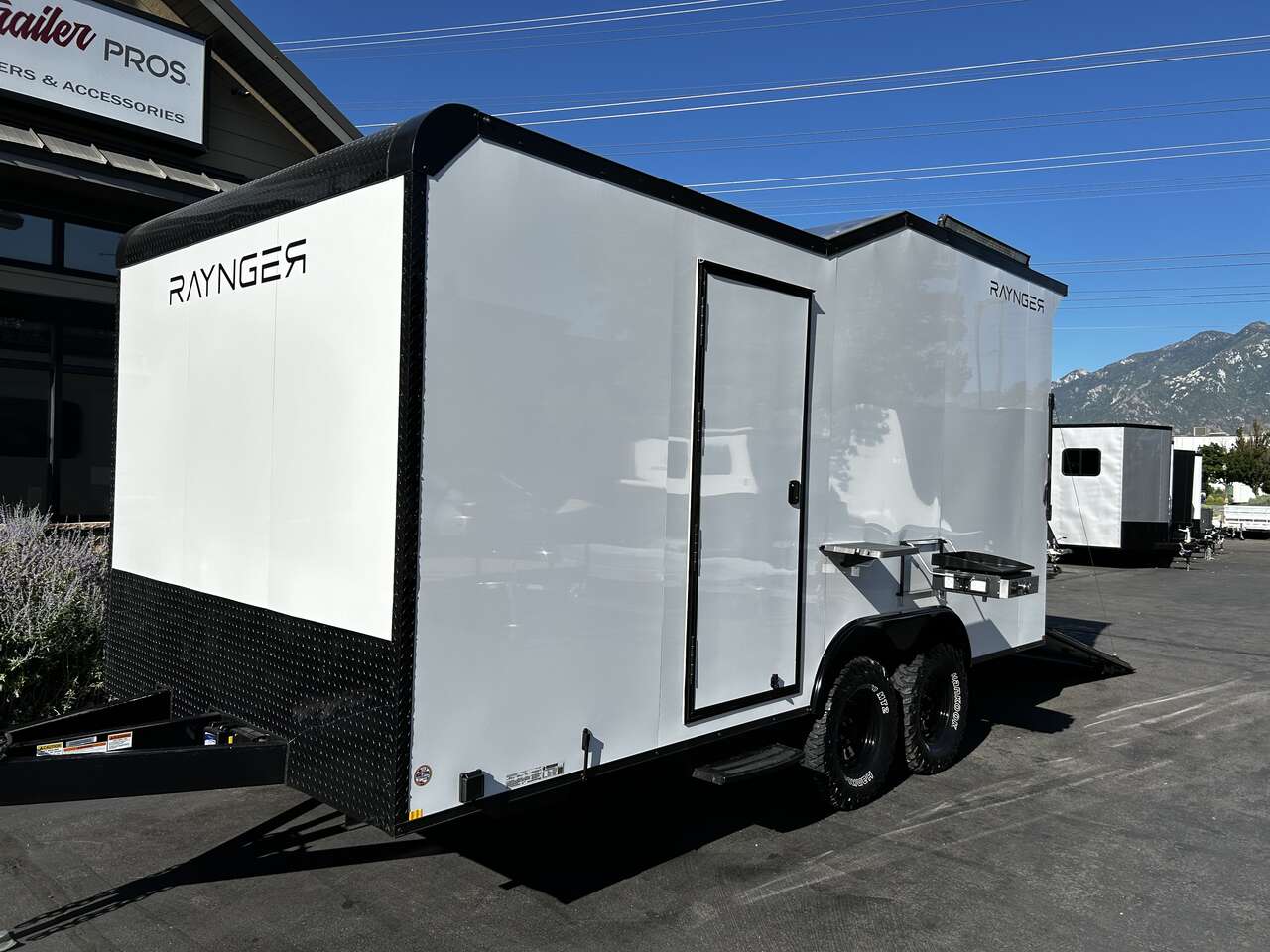 21 INCH GROUND CLEARANCE!!! 32 INCH OFF ROAD TIRES!!! NEW OFF ROAD TOY HAULER MODEL!!! GO WHERE OTHERS ONLY DREAM!!! DO YOU WANT A BATHROOM/SHOWER/KITHCHEN AREA? SEE PICTURES FOR AN OPTIONAL FULL BATH/HALF KITCHEN ADD ON OPTION!!! ASK SALES STAFF FOR PRICING!!! RAYNGER PREMIUM OFF ROAD TOY HAULER CAMPER!!! FULLY INSULATED!!! HEATING AND A/C READY/FRAMED/STUBBED/WIRED!!! STOW AND GO QUEEN BED!!! 81 Inch Rear Entry Height!!! Power Fan Ventilated!!! Water Resistant Poly Bead Flooring (Same Used in Snowmobile Trailers) EXTRA TOUGH!!! Patio Conversion Jacks!!! 4 Foot LED Party Lights for night time fun!!! Marine Battery with Box. Solar Prepped!!! You HAVE to come see this BEAST in person, it will amaze you!!!