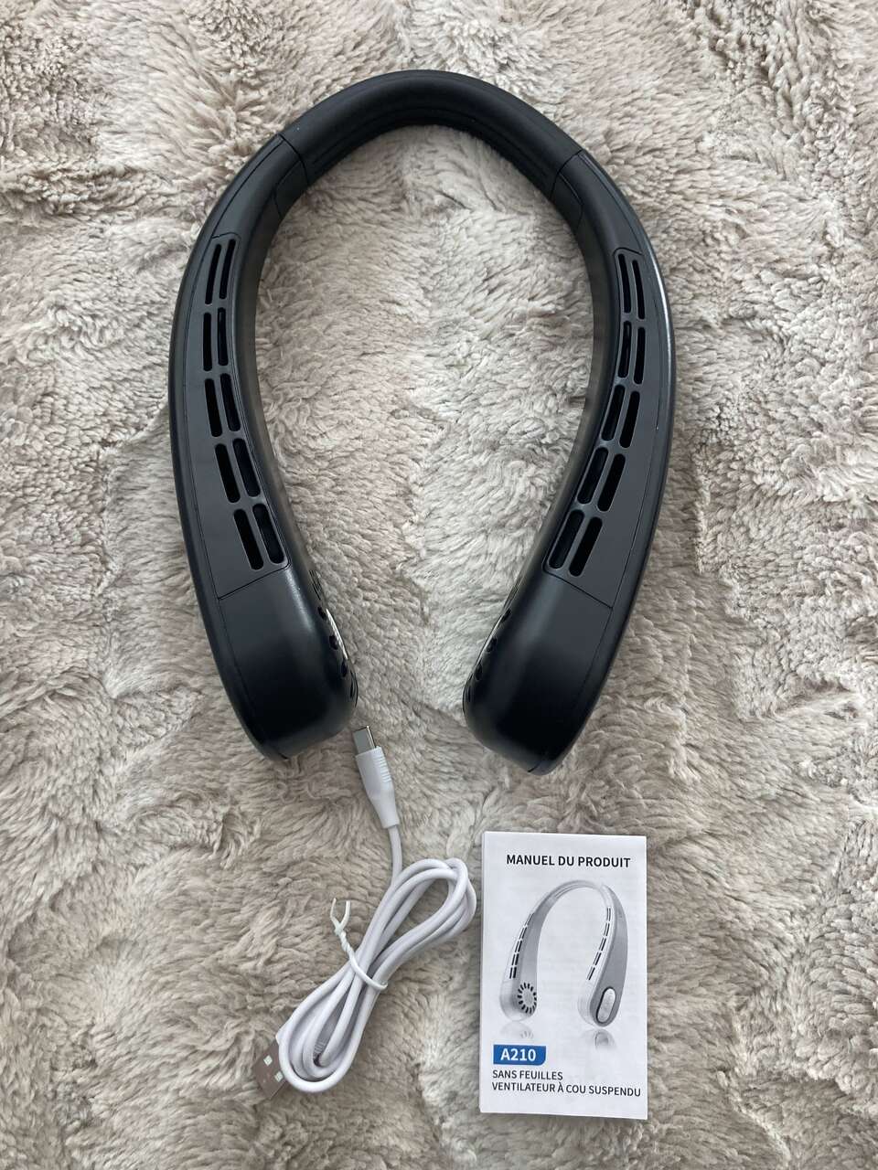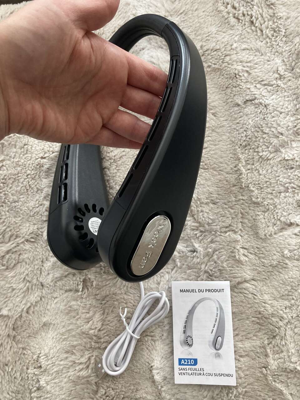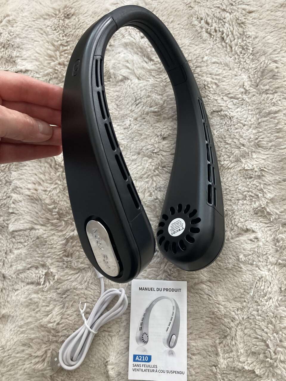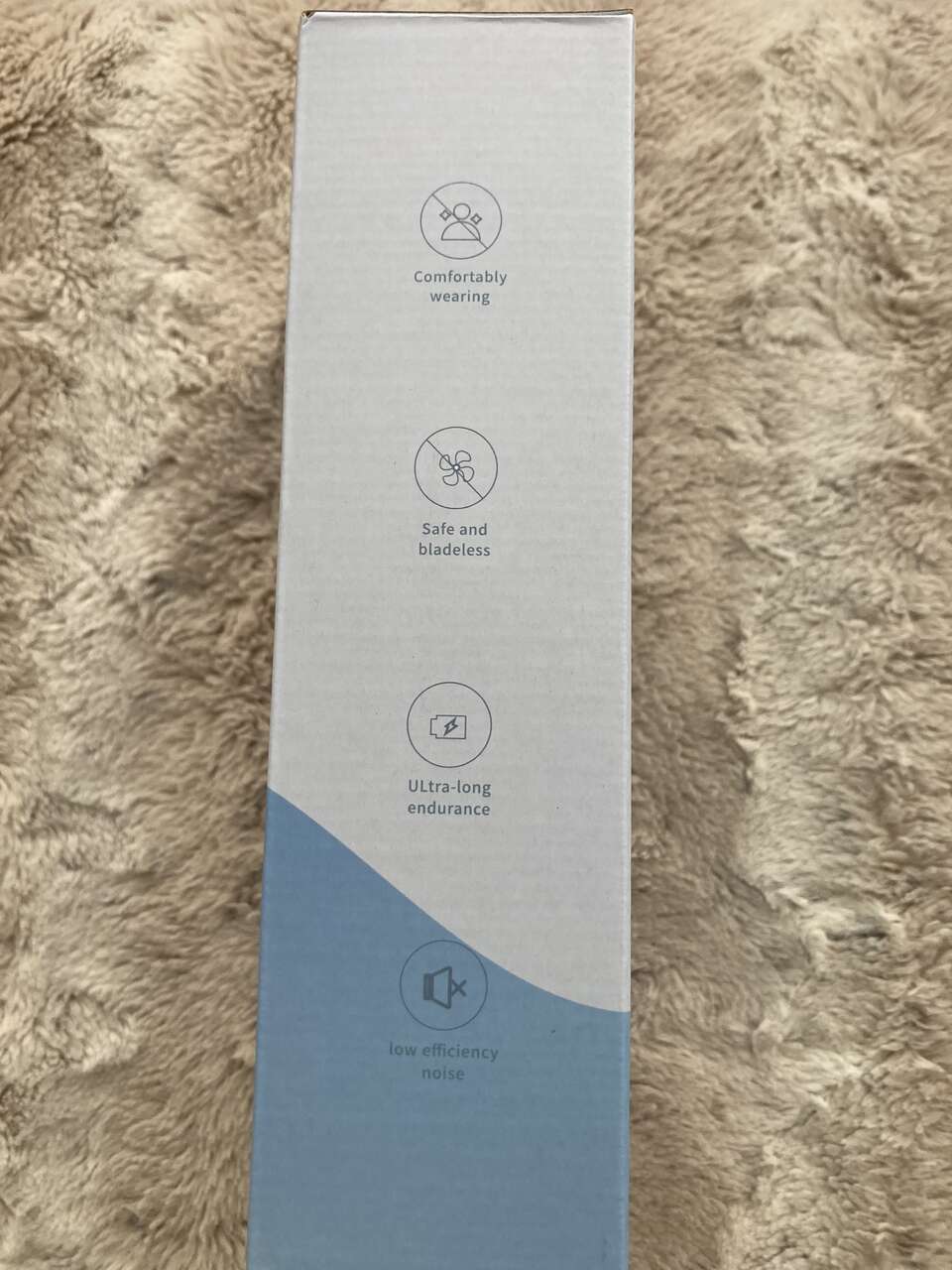 Retails for $30.00. USB Rechargeable, 3 Speed Cooling, Ultra Quiet Color: Black Electric fan design Wearable Fan Power Source: Battery Powered Product Dimensions: 8D x 0.22W x 5.5H Special Feature: Bladeless, Portable, Lightweight Noise Level: 25 dB