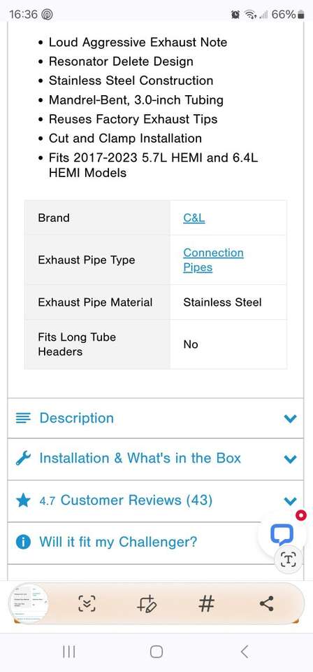 I have a kit of resonators delete for Dodge Challenger I never used purchased but never installed on my Challenger they are new it come with instructions, and all the hardware it will fit 2017 to 2023 5.7L Hemi and 6.4L Hemi Challenger paid 200 with delivery and tax but selling for 150 dollars text me for more info.