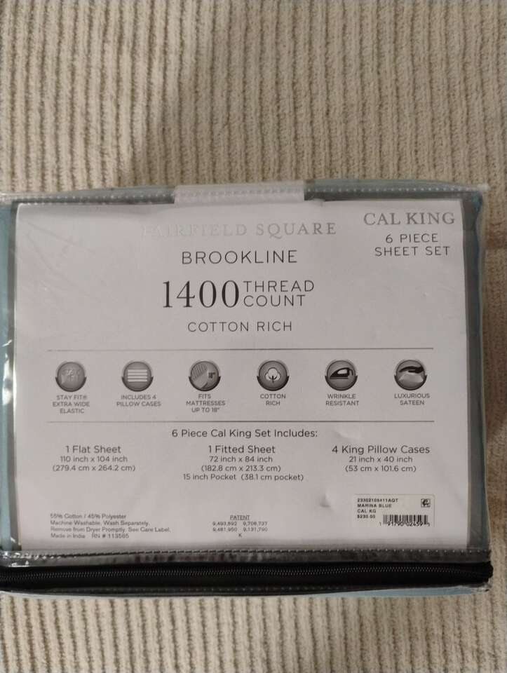 Fairfield Square Brookline 1400 Thread Count Cotton Rich Cal King 6 piece sheet set color blue