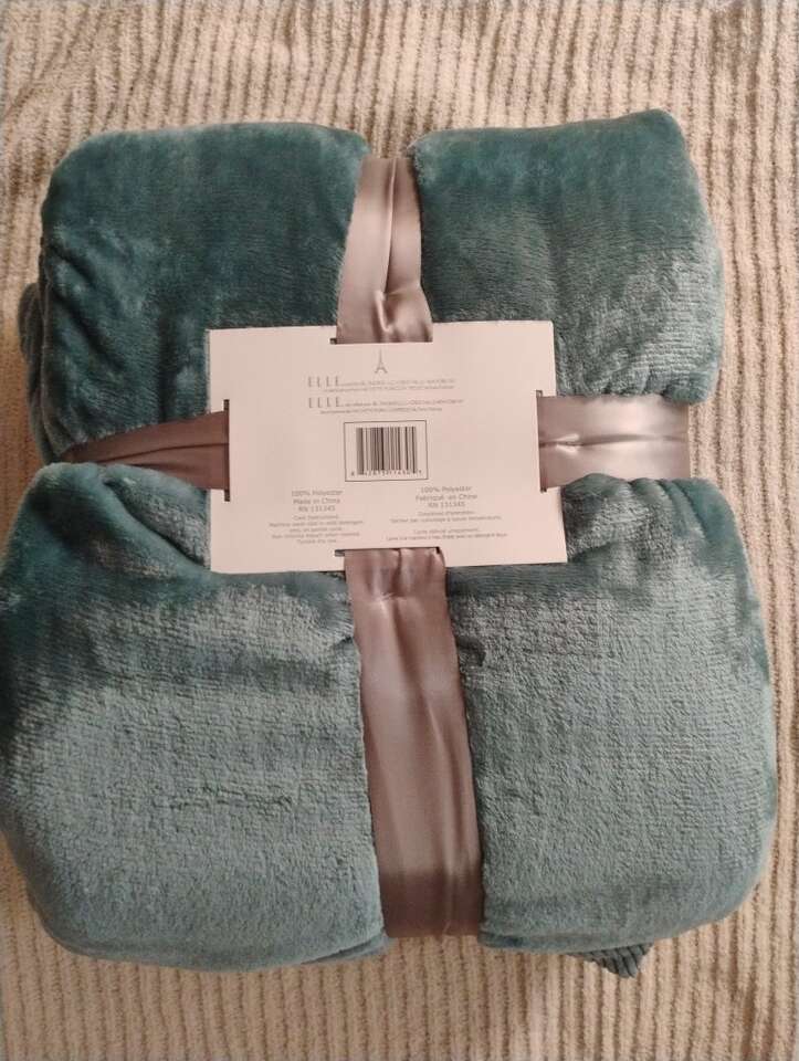 Elle Decor Corduroy Trim Soft Blanket King Size Teal Color 100% polyester