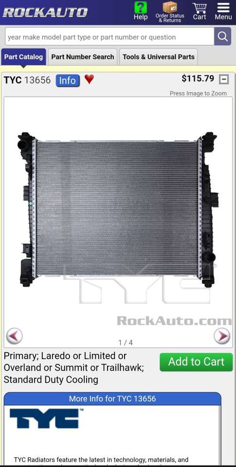 Ordered this off RockAuto and actually never needed it. Still in the box never opened and no damage. It's for a Jeep Grand Cherokee(All Models) I paid $115 plus tax and shipping fees. Asking $115