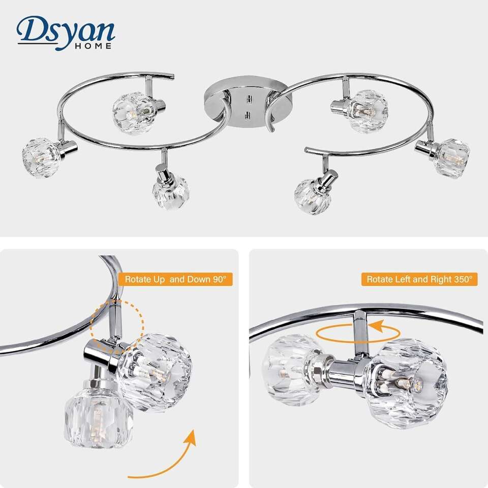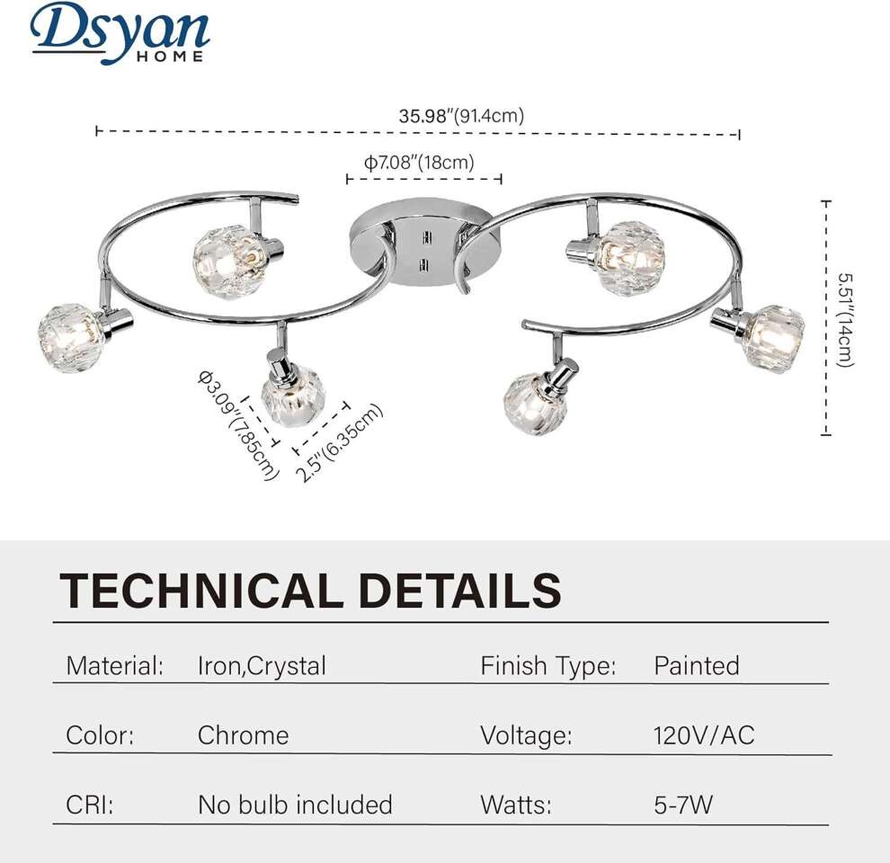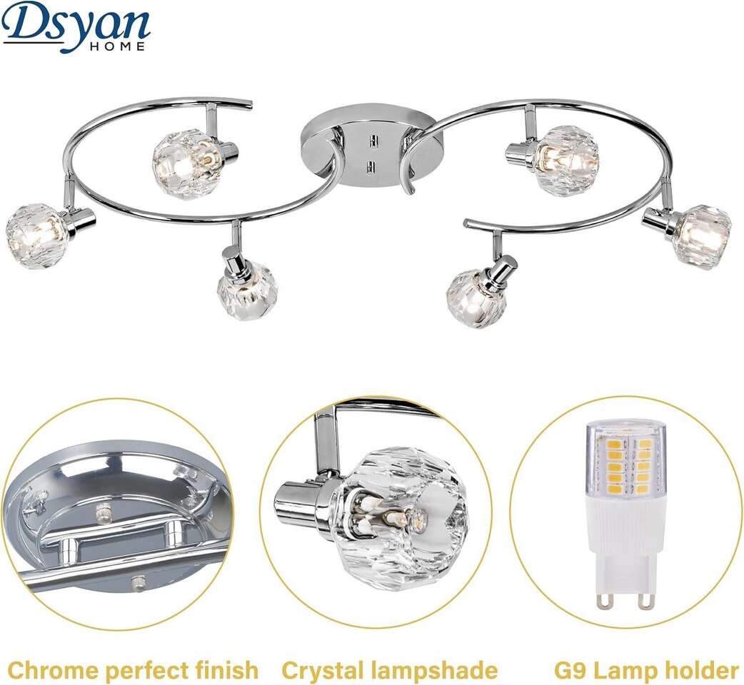 Retailer's Titile: Chrome Round Track Light Kit,Crystal Light Head,6 Ways Ceiling Spot Light with Flexible and Rotatable Light Head, for Bathroom,Living Room, Hallway,G9 Base(Bulb Not Included) Retailer's Website: https://a.co/d/7Gbs0W6
