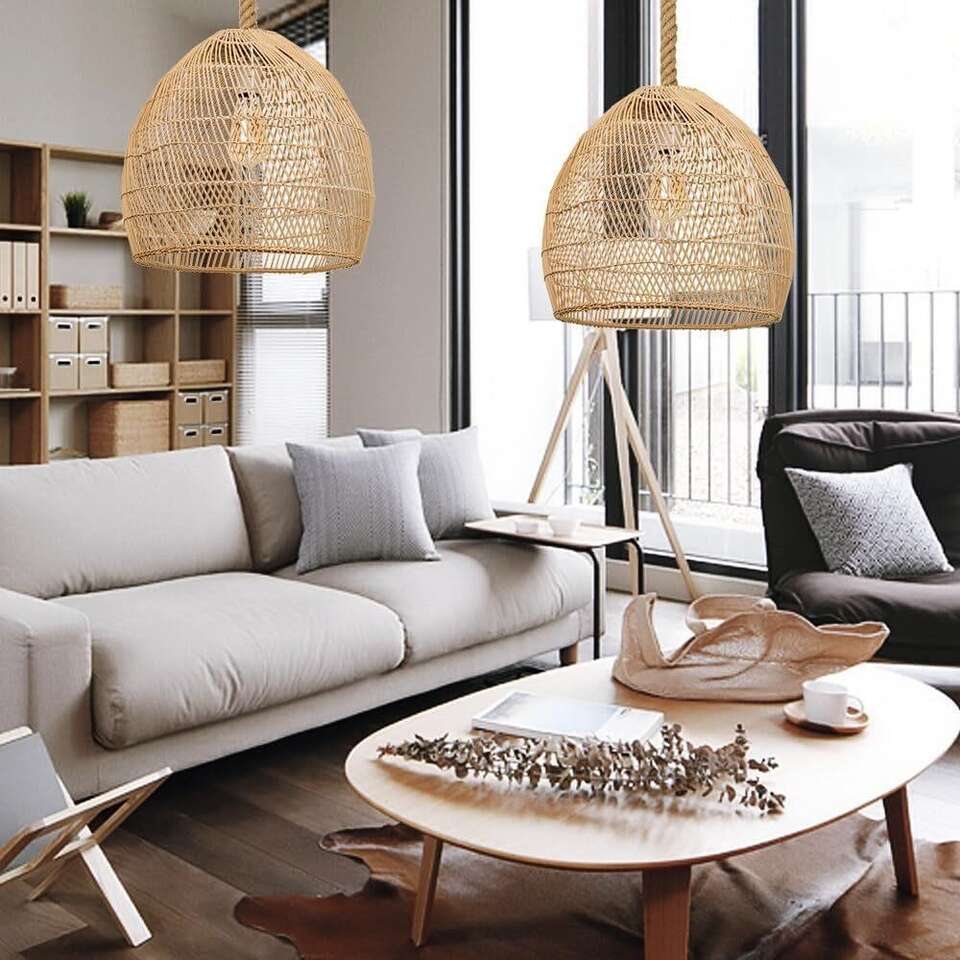 Natural Material: creative rattan lampshade selected natural high quality rattan. Hand-woven lampshade healthy eco-friendly and durable. For hardwire part we wrapped wide hemp rope material outside it just make our lampshade more visual full of boho and coastal style.