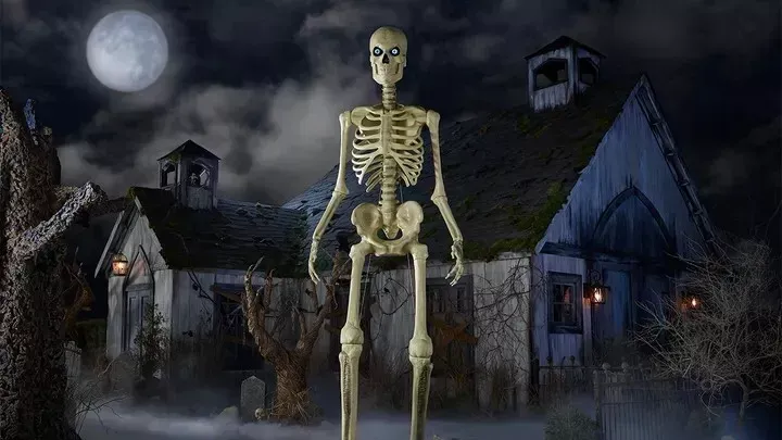 HE'S BACK! Bringing a larger-than-life appearance this Halloween, this 12 foot Skeleton is the perfect spooky decoration to frighten all who dare come near. Perfect for giving trick-or-treaters and guests a friendly-scare, the Skeleton features LED-illuminated LifeEyes that appear to move and blink as it activates and has 8 different eye settings. These bright lights give the perfect balance of fright and joy. Easy set up and break down for seasonal storage. Carefully crafted with a realistic finish, this prehistoric giant will bring the right amount of scary to any yard this season.