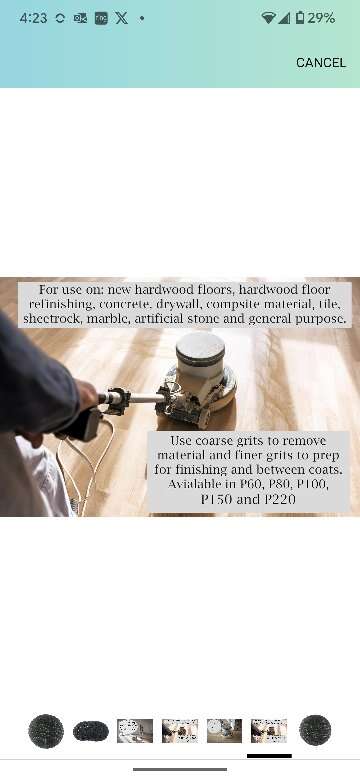 Top Highlights Size 17 in. Color120 Grit Backing Type Fiber Product Dimensions 17"L x 17"W Brand Sungold Abrasives Grit Type Medium These mesh screen discs are made of strong fibers with uniform open construction and a superior abrasive coating for a consistent cut from start to finish Excellent for floor refinishing Use both sides for extended life Package dimensions:17.0"L x 17.0"W x 2.0"H