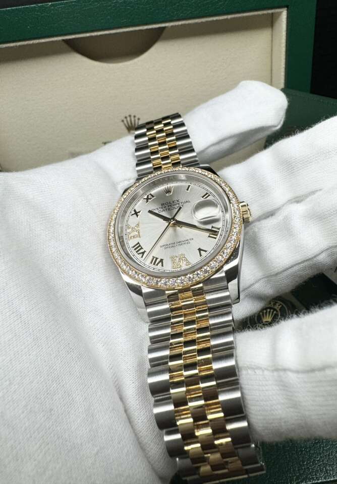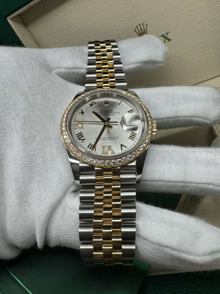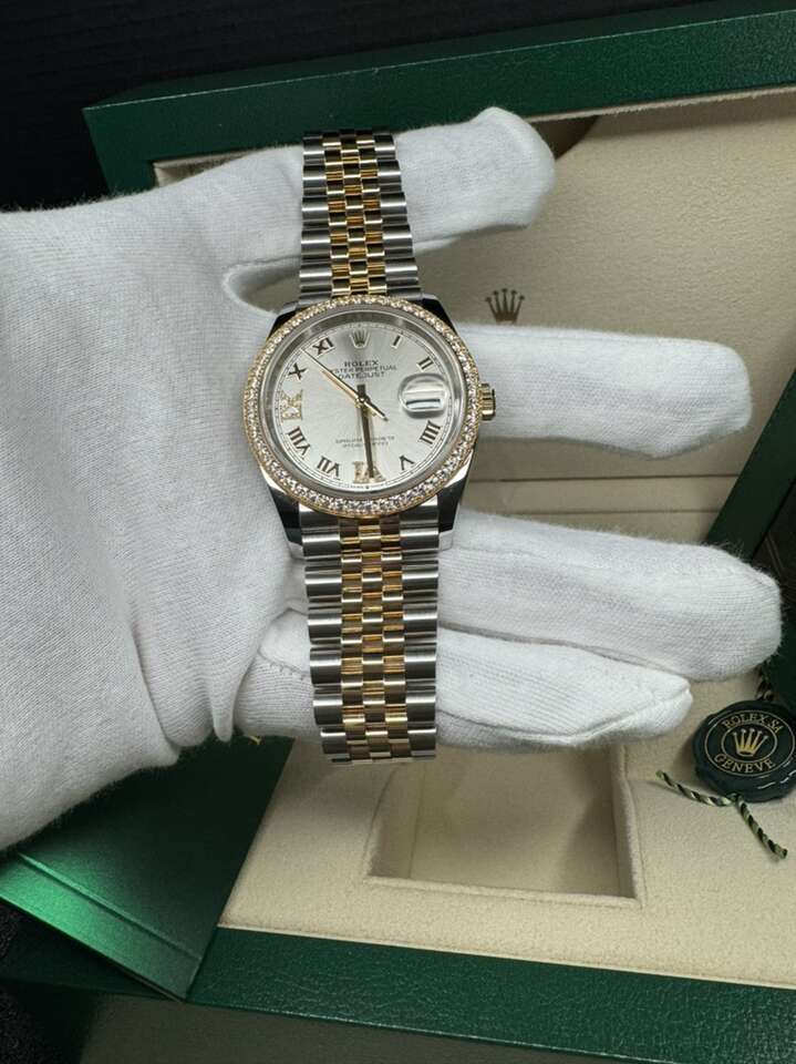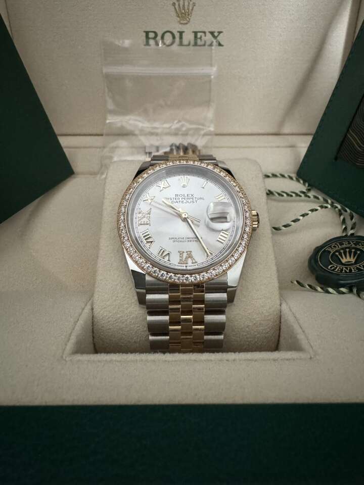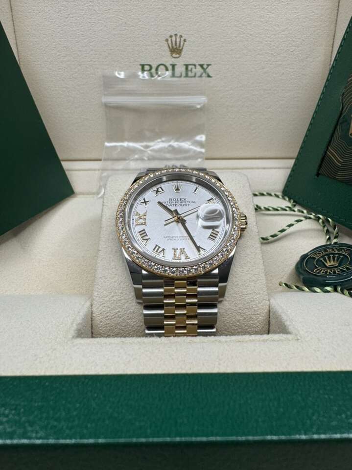 ROLEX DATEJUST 36 126283RBR STEEL YELLOW 18k GOLD SILVER DIAL DIAMOND BEZEL WARRANTY 2028